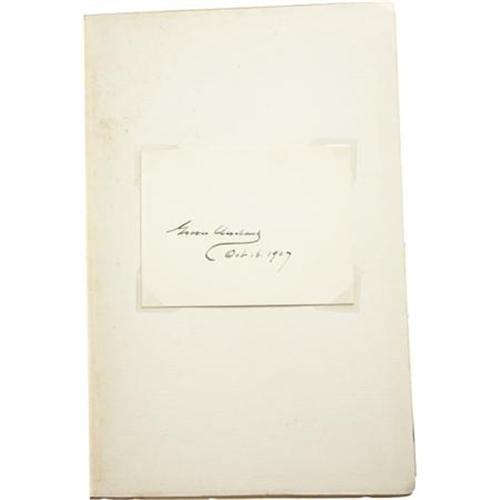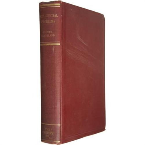 <B>Grover Cleveland, </B></I><B><I>Presidential Problems</B></I></B></I><B> with Signed Card</B></I> (New York: The Century Co., 1904) first edition, 281 pages, untrimmed edges, burgundy-cloth binding with gold lettering, 8vo (8.5” x 5.5”). This memoir was published in 1904, seven years after Cleveland’s second (nonconsecutive) term as President. That same year, conservative Democrats attempted to nominate him for a third term, but his poor health prevented him from accepting. Cleveland died in 1908. A 2.5” x 3.5” card, signed and dated <I>“Grover Cleveland / Oct. 16, 1907”</B></I> has been attached to the front endpaper with mylar corners. The book is in very good condition with pencil annotations in the margins of some pages; the signature card is fine.<BR><BR><b>Shipping:</b> Books & Catalogs (<a target="_blank" href="http://www.heritageauctions.com/common/shipping.php">view shipping information</a>)