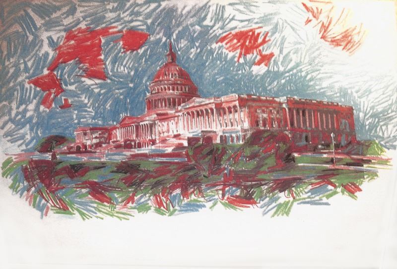 Grover Mouton, US Capitol Building, Color Pen, Graphite and Oil Stick Drawing