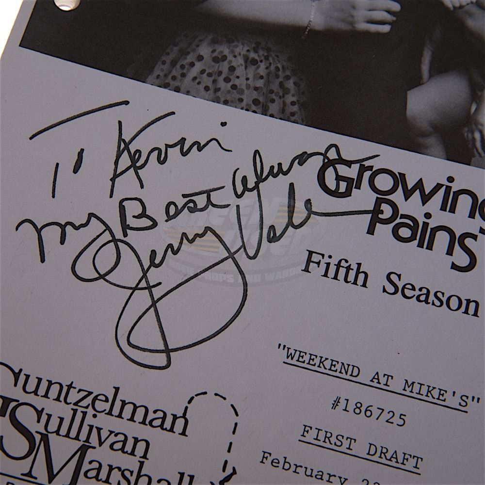 (Warner Bros., 1985-1992) This 59 page production script was issued to assistant director Kevin Tracy and is dated 12/19/88. The script features all white pages and has minor wear from use. Jerry Vale has signed and inscribed the cover page to Kevin.