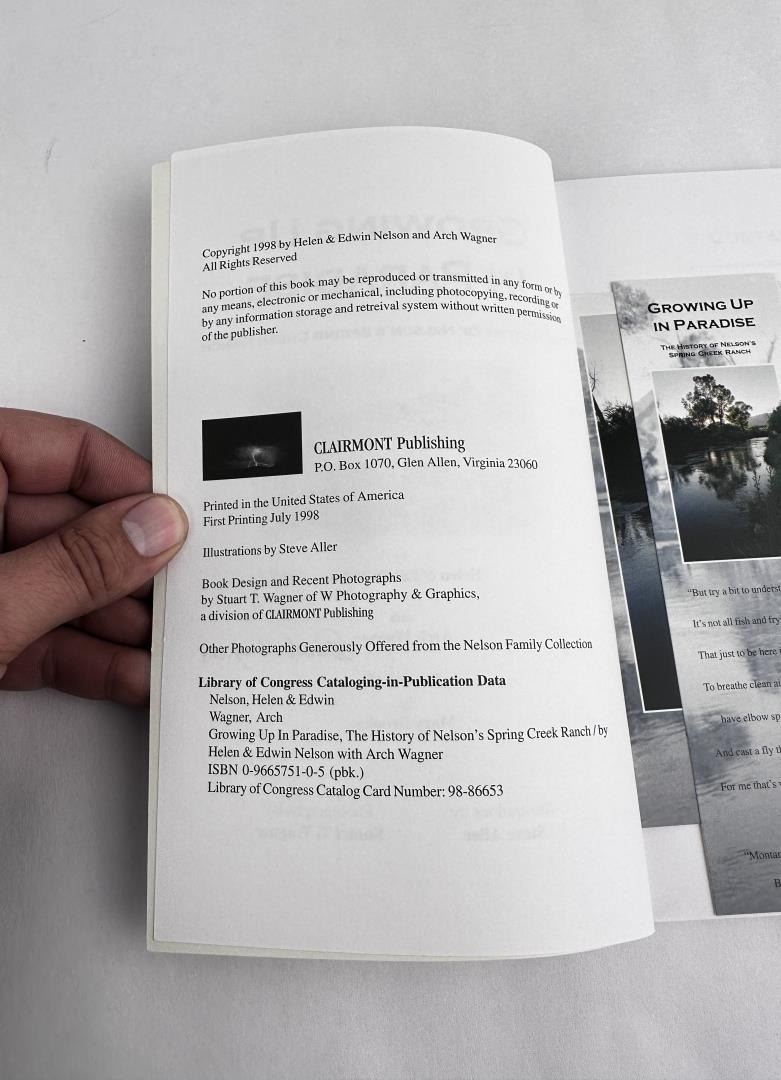 The History of Nelson's Spring Creek Ranch. Helen & Edwin Nelson, 1998. Stated First Printing