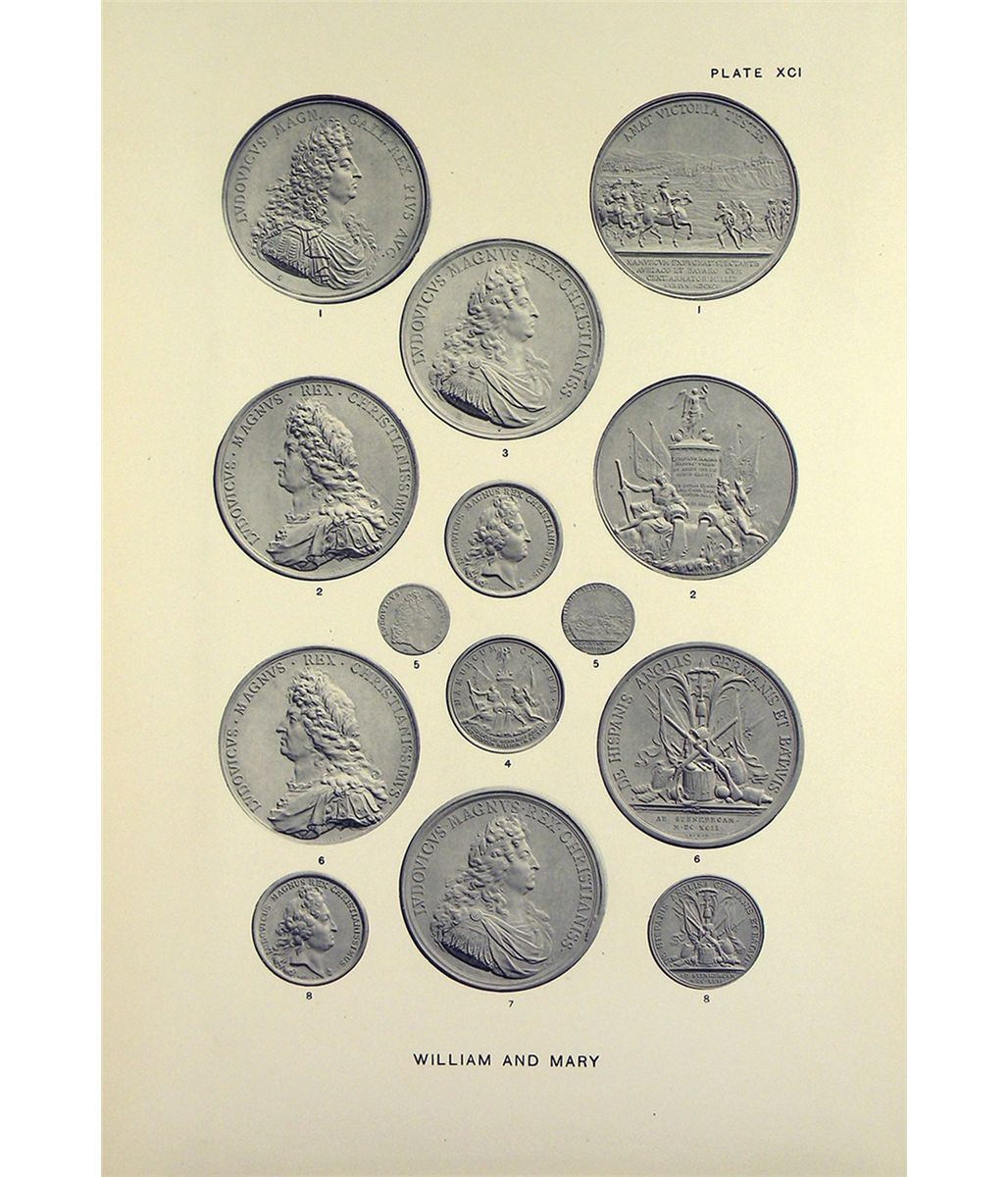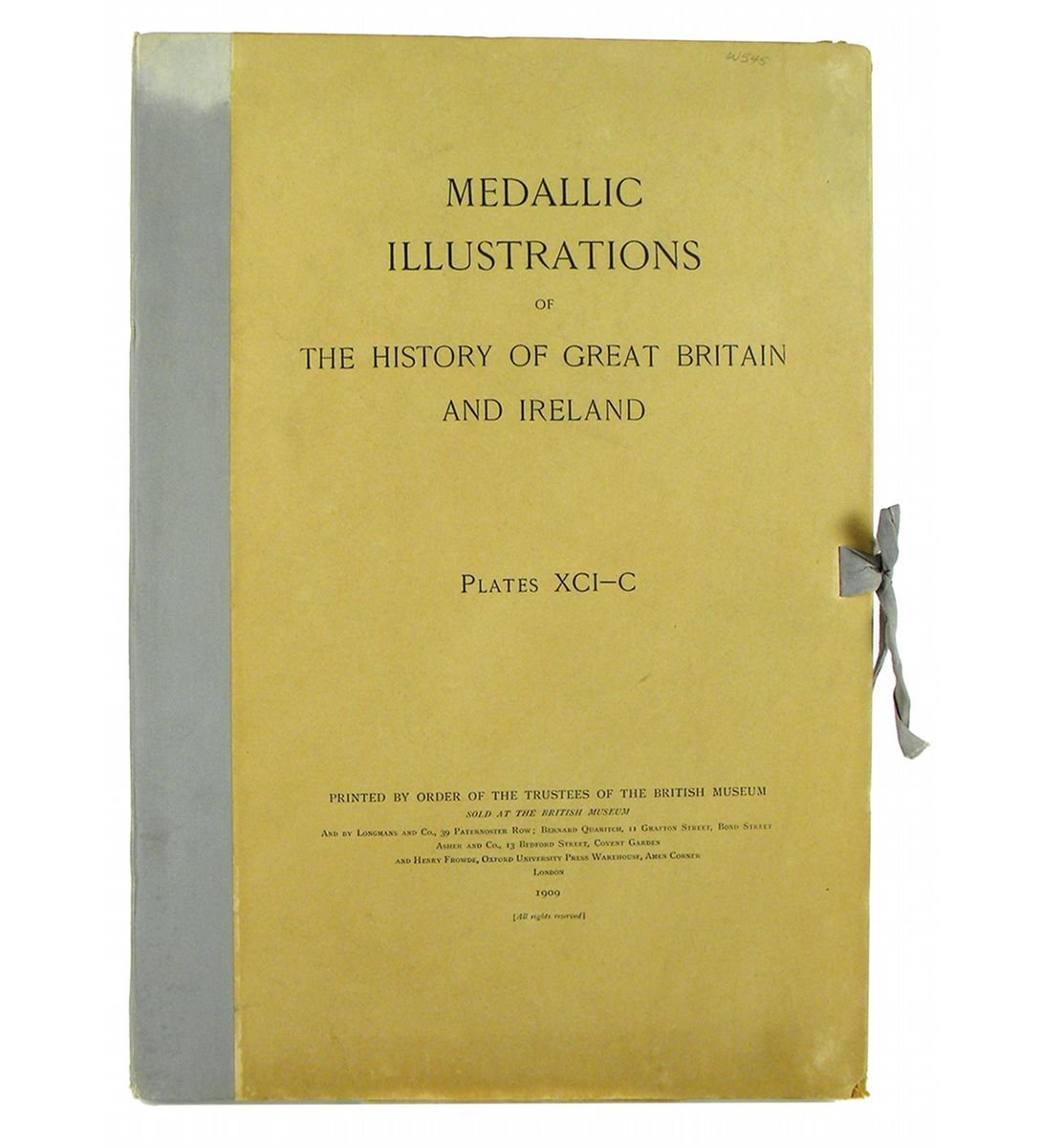 Grueber, Herbert A. MEDALLIC ILLUSTRATIONS OF THE HISTORY OF GREAT BRITAIN AND IRELAND TO THE DEATH OF GEORGE II. London: Printed by the Trustees of the British Museum, (1904)-1911. Nineteen parts complete, housed in 14 portfolios. Folio, original printed gray portfolios. General title; preface; indexes; individual titles; 183 superb plates, each with accompanying descriptive text. Generally fine. An original set of the 183 superb collotype plates issued to accompany the two volumes of text written by Edward Hawkins and A.W. Grueber and published by the British Museum in 1885. It covers British medals from the time of Edward III up to 1760 and is the most comprehensive visual record of the series. It remains a key reference on British medals issued during this period relating to America. Clain-Stefanelli 14691*. Grierson 165 and 264: "L'ouvrage le plus important."