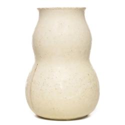 Grueby vase, gourd form covered with a cream colored suspended matt glaze, impressed mark, 7”h, chips to rim