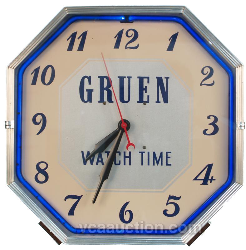 "Gruen - Watch Time" Octagon Blue Neon Clock, Works - 1