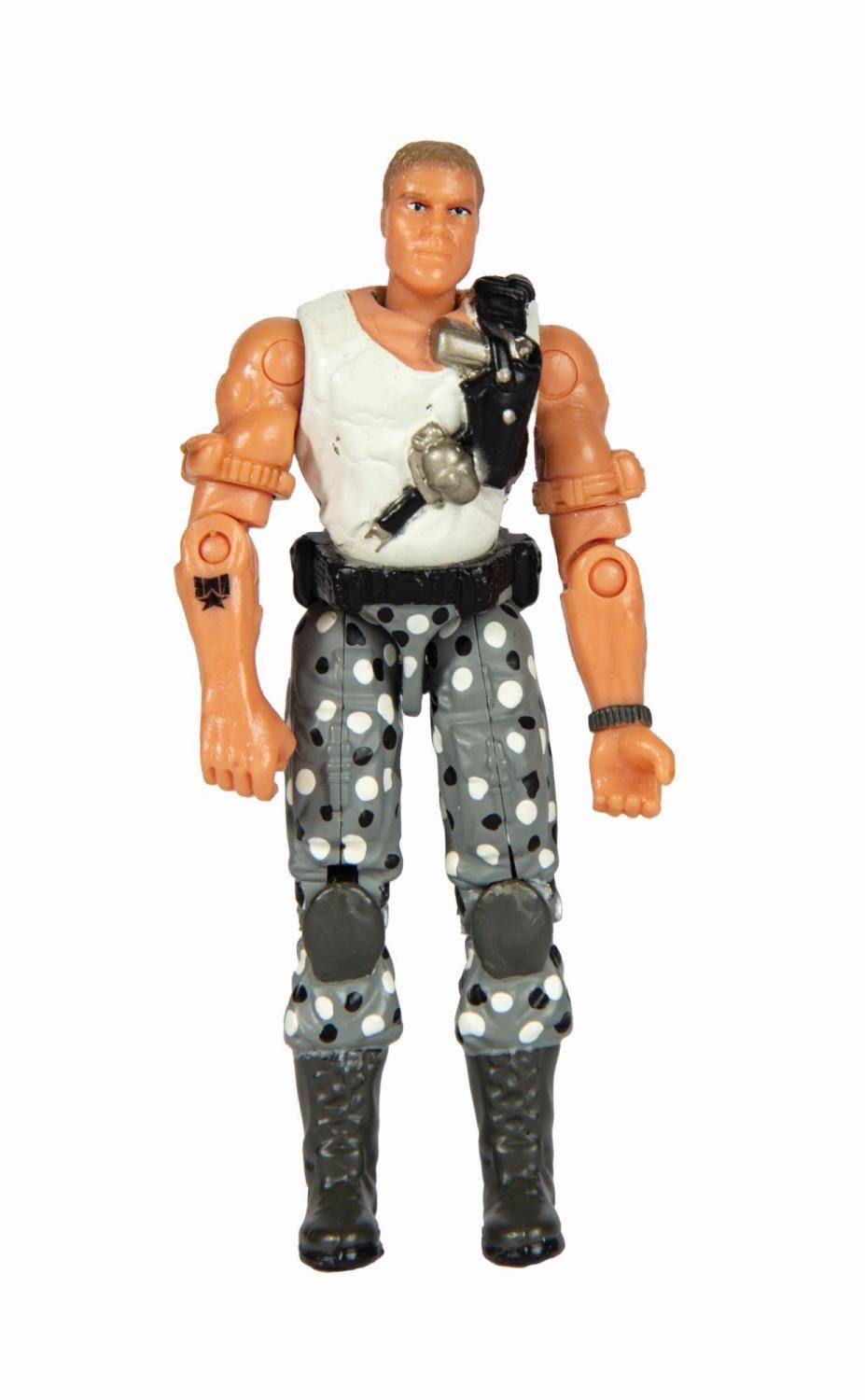 (Hasbro, 2005) An original unreleased color test vendor sample prototype Grunt action figure for the Hasbro G.I. Joe line. The figure reuses the tooling from Grunt versions 5-7 and 9, and features a factory white shirt and gray pants with hand-painted deco details applied including eye-catching black-and-white polka dots. This design was never put into production, and the mold was never used again for a commercially released Grunt after 2004's version 9. Measuring 3.75" tall, the prototype action figure is in very good condition with only minor surface wear.