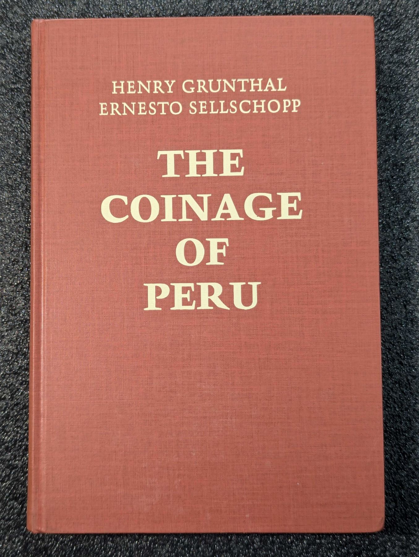 Grunthal, Henry & Dr. Ernesto A. Sellschopp. THE COINAGE OF PERU. Numismatischer Verlag P.N. Schulten, Frankfurt. 1978. 8vo. 303, (1) pages. original russet cloth, lettered in white. Bibliography. B&w coin photos throughout. English and German text. Fine. This book includes a short survey of the historical development of Peruvian coinage that covers the periods from Pre-Columbian through the modern decimal coinage. The coins are organized by assayer and sub-organized by denomination and then by date. Each denomination has a number reference and each date has a bibliographic/research reference. Lot weight: 1 lbs 5oz. Subject(s): Peruvian Coinage.