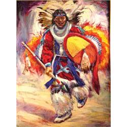 Guadalupe Apodaca (b.1941) (Arizona). Oil on Canvas. "Santa Fe Pow-Wow." 30" x 40". Framed. Estimate $3,500 - $4,500.