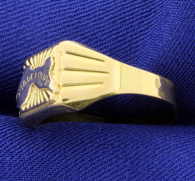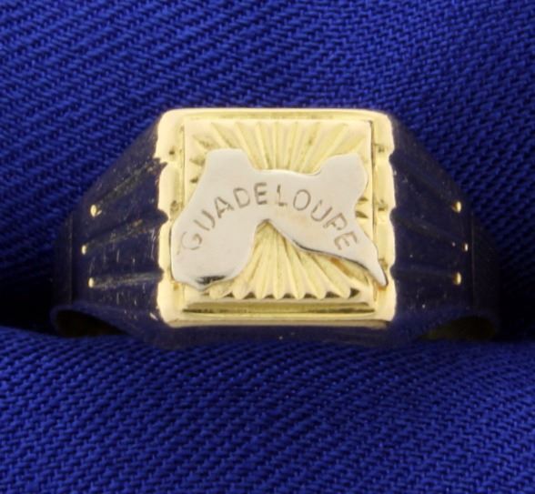 Stamped "750" yellow & white gold, this ring is a size 10. 3.0g