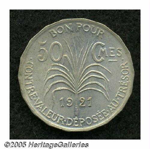 Guadeloupe. Republic 50 Centimes 1921, KM45, UNC,