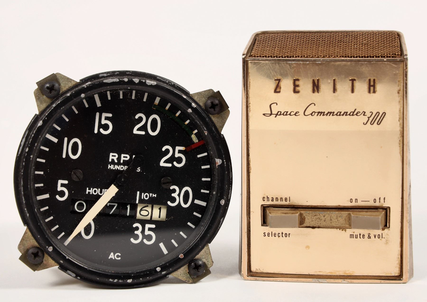 Lot of 2. Rpm gauge for a 1942 Voltee trainer . Zenith Space Commander remote.