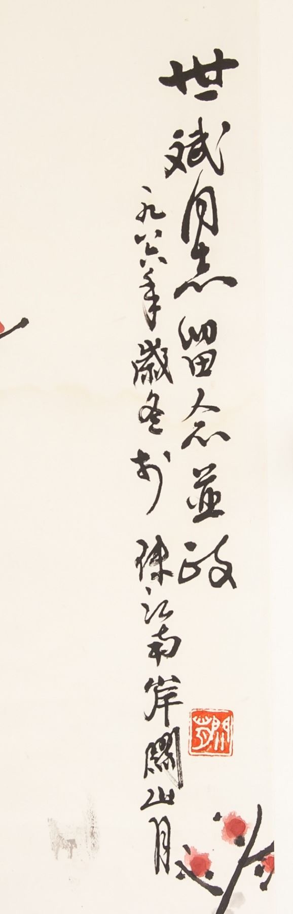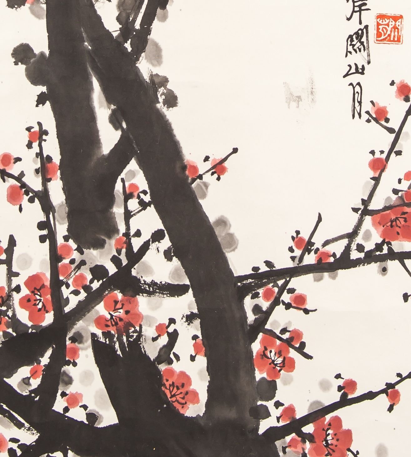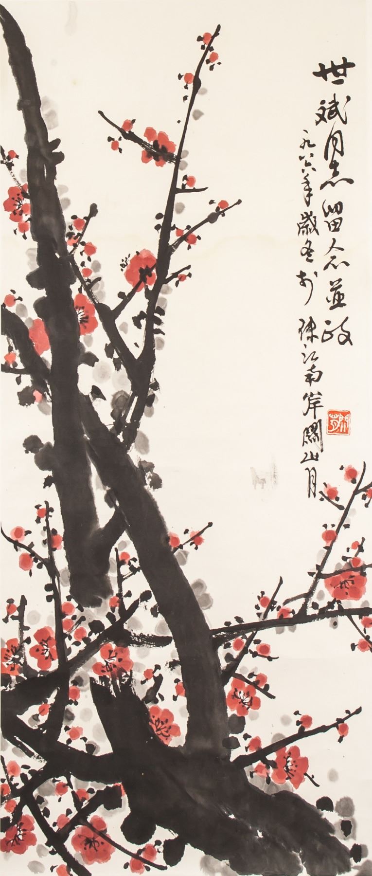 Painting plum tree; Chinese ink and watercolour on paper; hanging scroll; signed Guan Shanyue (1912-2000), Chinese painter; inscribed with 1 artist seal; 82 cm x 35 cm