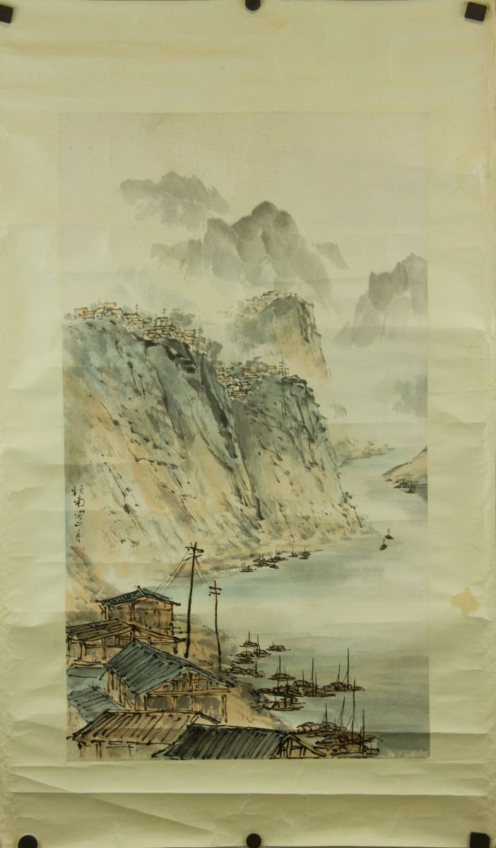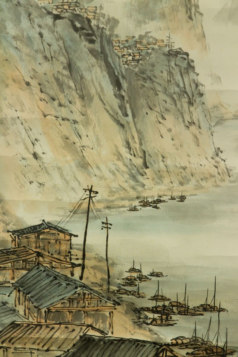 Riverside landscape; Chinese ink and watercolour on paper; signed Guan Shanyue (1912-2000) and inscribed with one artist seal; 83 cm × 47 cm