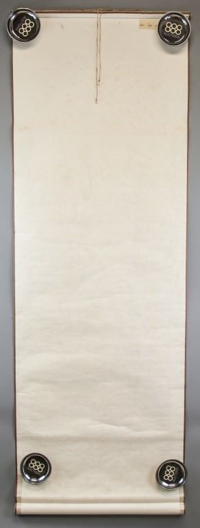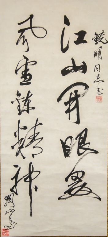 Chinese ink on paper. Featuring calligraphy. Signed "Guan Shanyue" to the bottom left. Inscribed with two stamps. 43 x 97 cm.