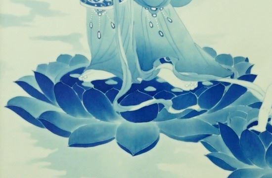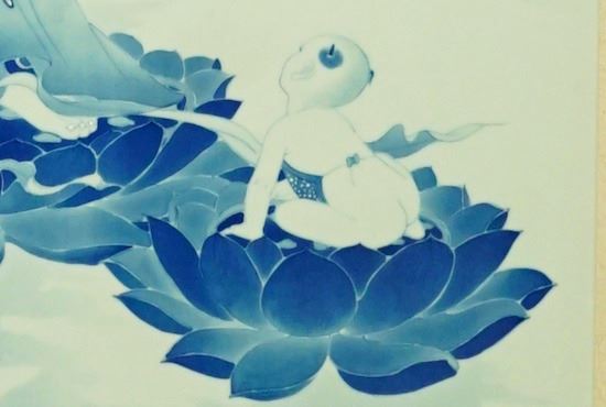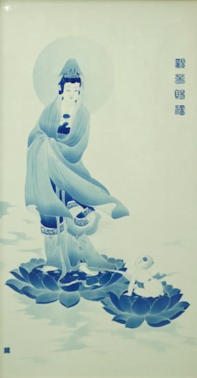 "Guan Yin Ci Fu" Blue and White Porcelain Plaque with Certification. Artist: Tian,Man: One of the mo