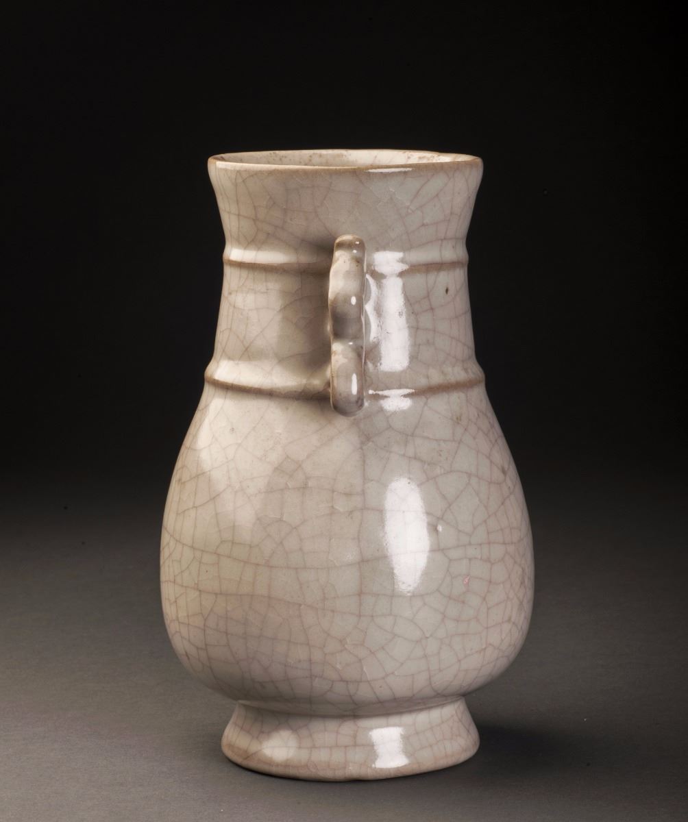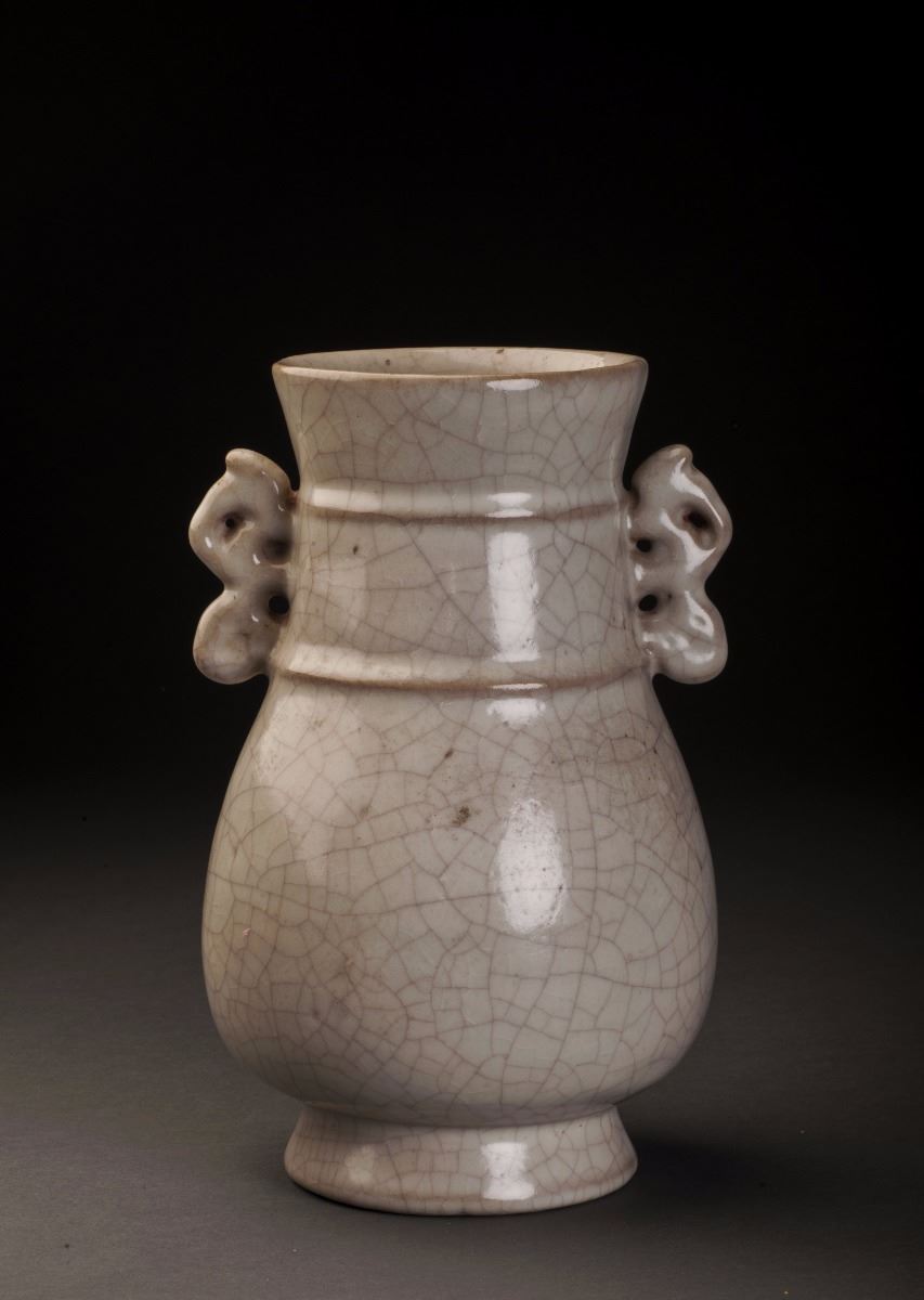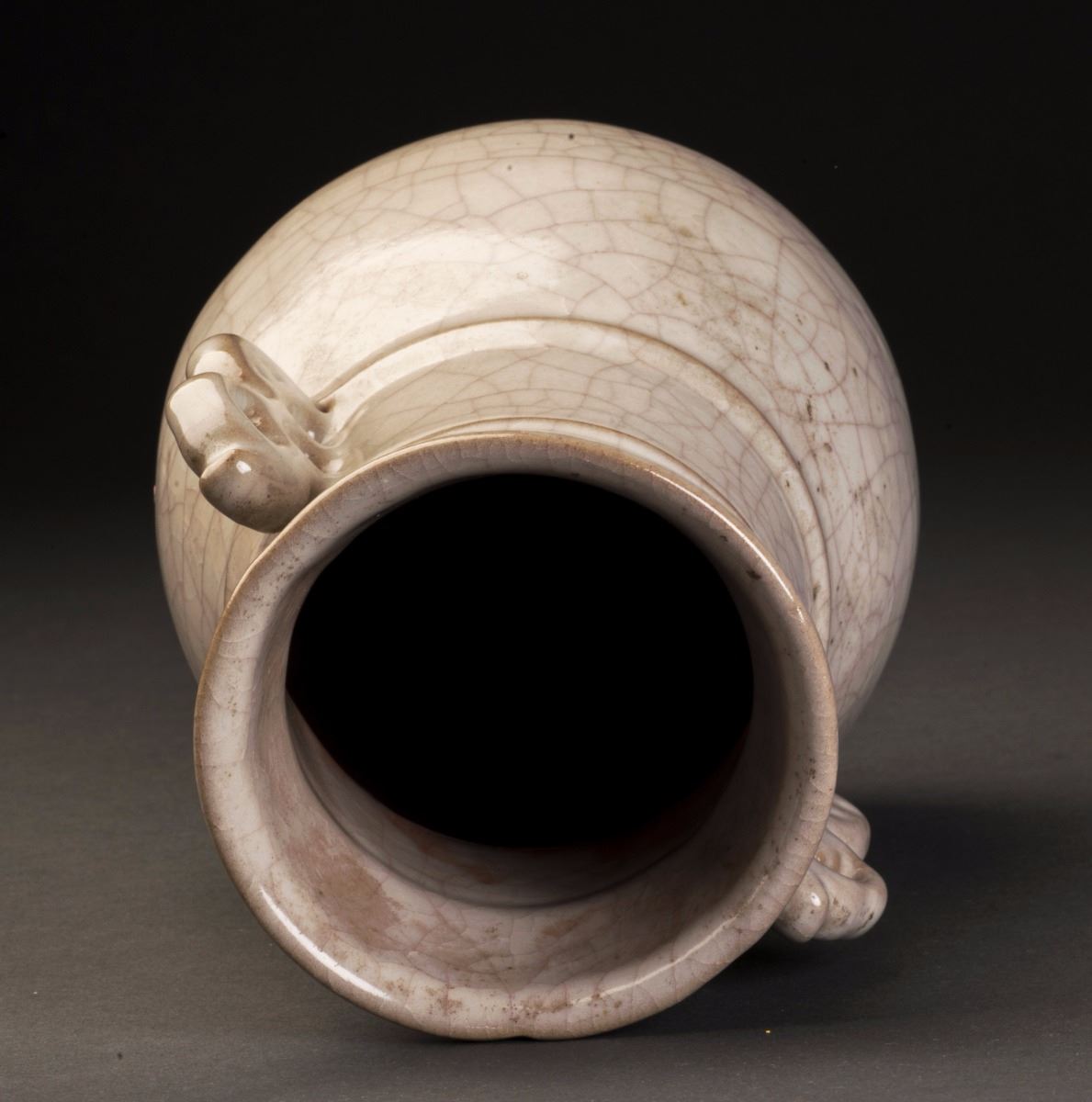 Finely Potted, The Globular Body Supported By A Flared Foot And Rising To A Thick Waisted Neck With Two Circles Decorated. Two Delicately Designed Handles On Both Sides In The Blank Space Between The Two Circles.Slightly Flared Mouth At The Top. Attributed To Song Dynasty.