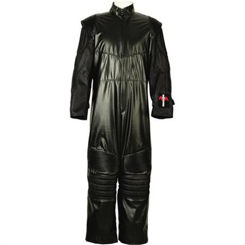 <B>Guard Uniform from "UltraViolet."</B></I> A rubber one-piece costume, worn by an extra playing a Medical Control guard (and undoubtedly a victim of Violet's vengeance), this rubber one-piece costume is a men's size small, and has the name "Lollis Lill" written along inner collar. In Very Fine condition with very mild wear to knee pads and thigh areas. <I>Accompanied by COA from Premiere Props</B></I>. <I> Accompanied by COA from Hollywood Prop Supply.</B></I><BR><BR><b>Shipping:</b> Clothing, Costumes & Jerseys (<a target="_blank" href="http://www.heritageauctions.com/common/shipping.php">view shipping information</a>)