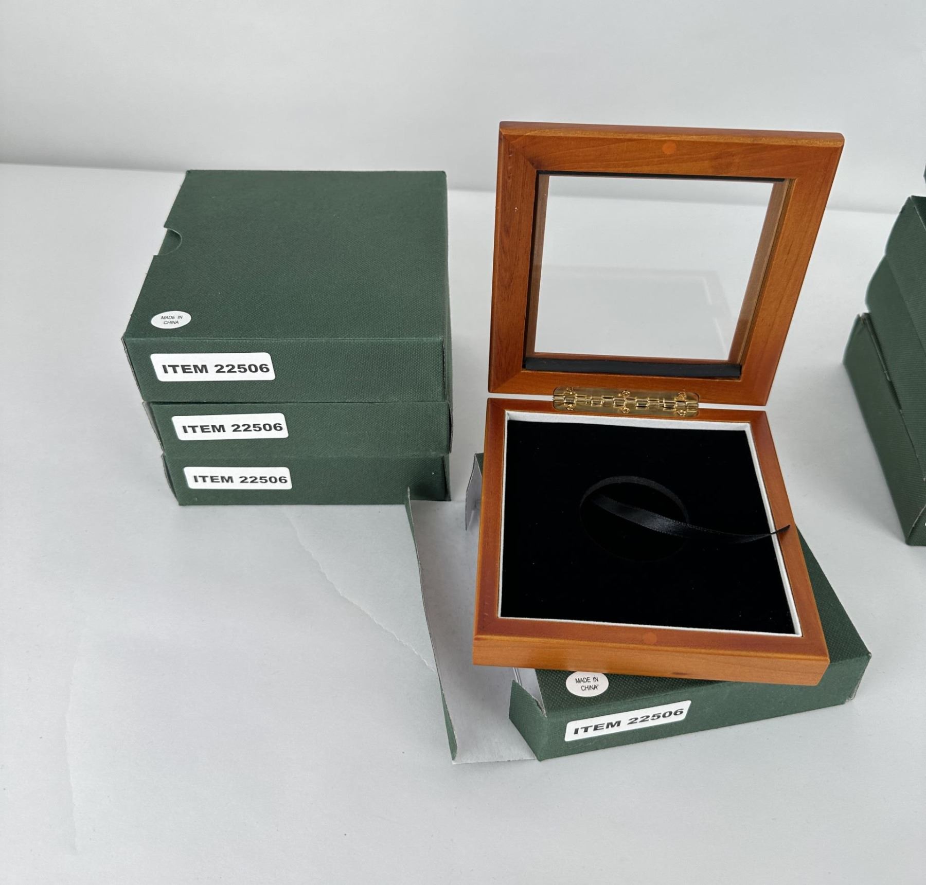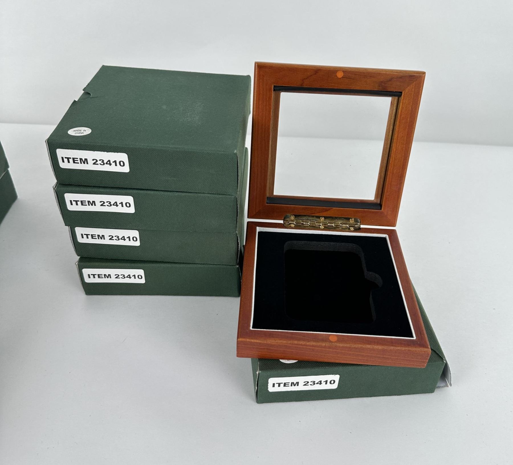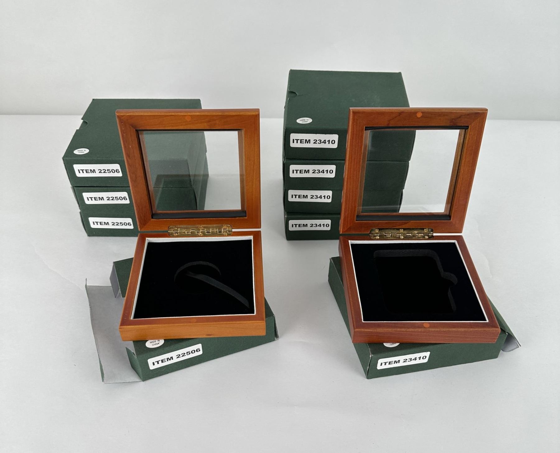 9 pieces. 4 of them are for silver rounds and 5 are for slabbed coins. Cases measure 5" by 5" by 1 1/4".