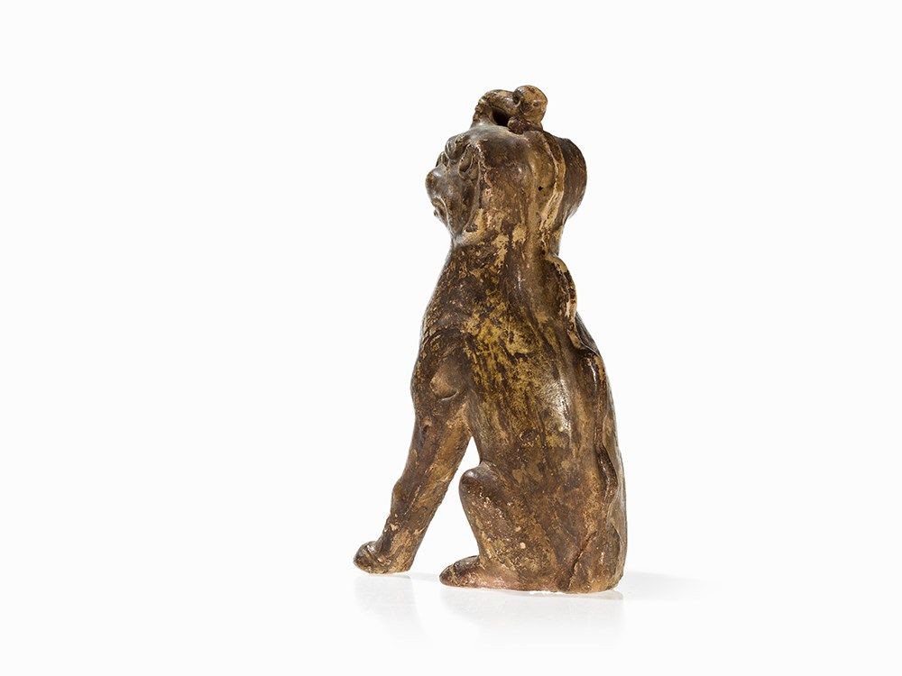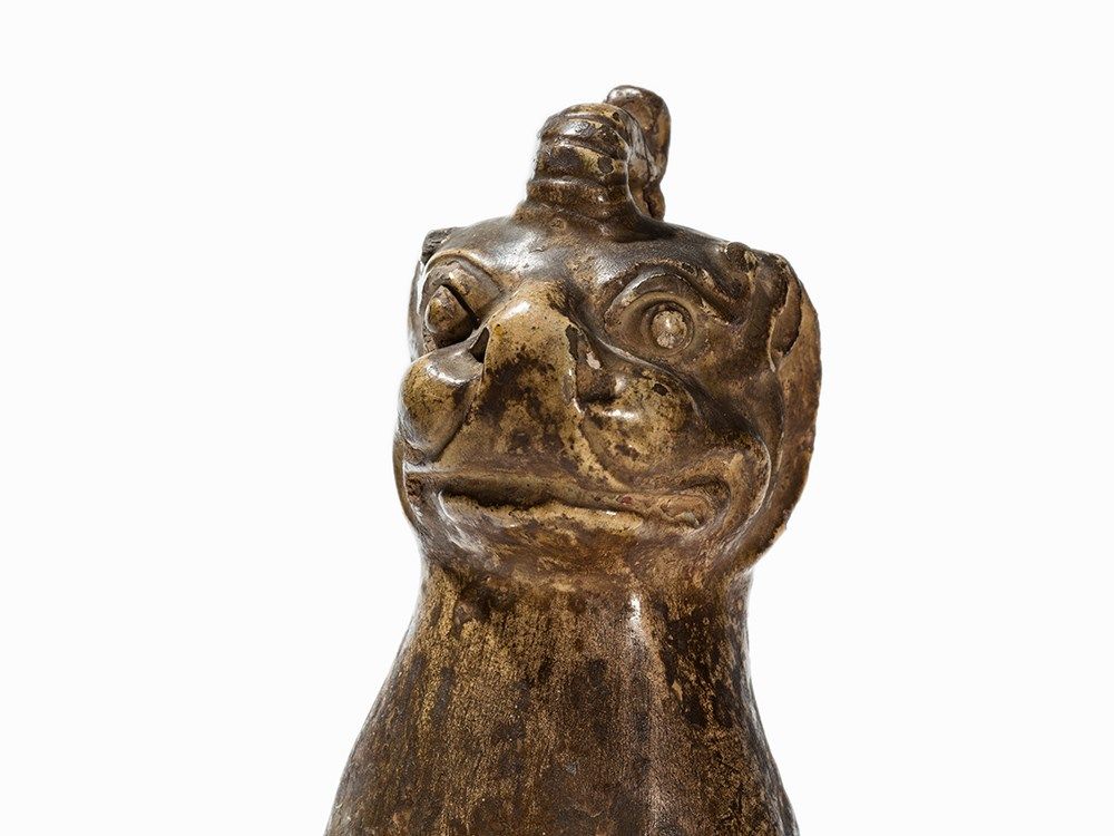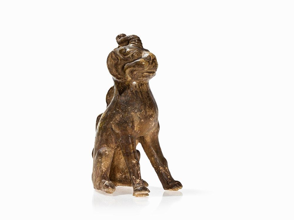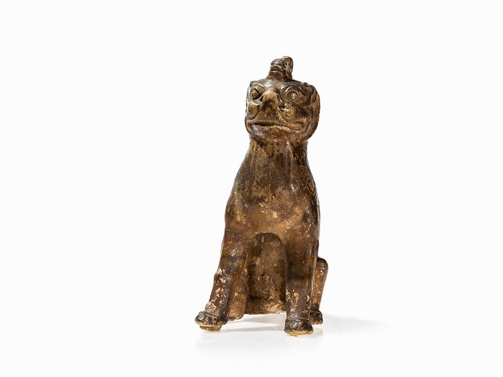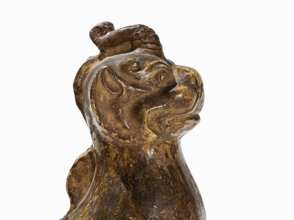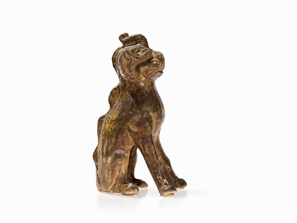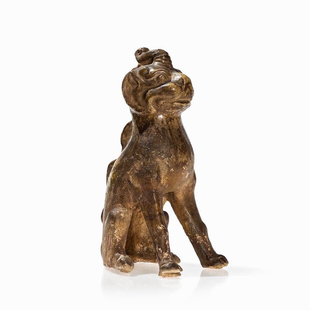 Figures of this kind were often placed in pairs at the entrance of a tomb area to protect the deceased against evil spirits. An almost identical guardian figure of the same size can be found in the Freer Sackler Collection, Smithsonian Institution, Washington D.C. (accession no. F1909.326).