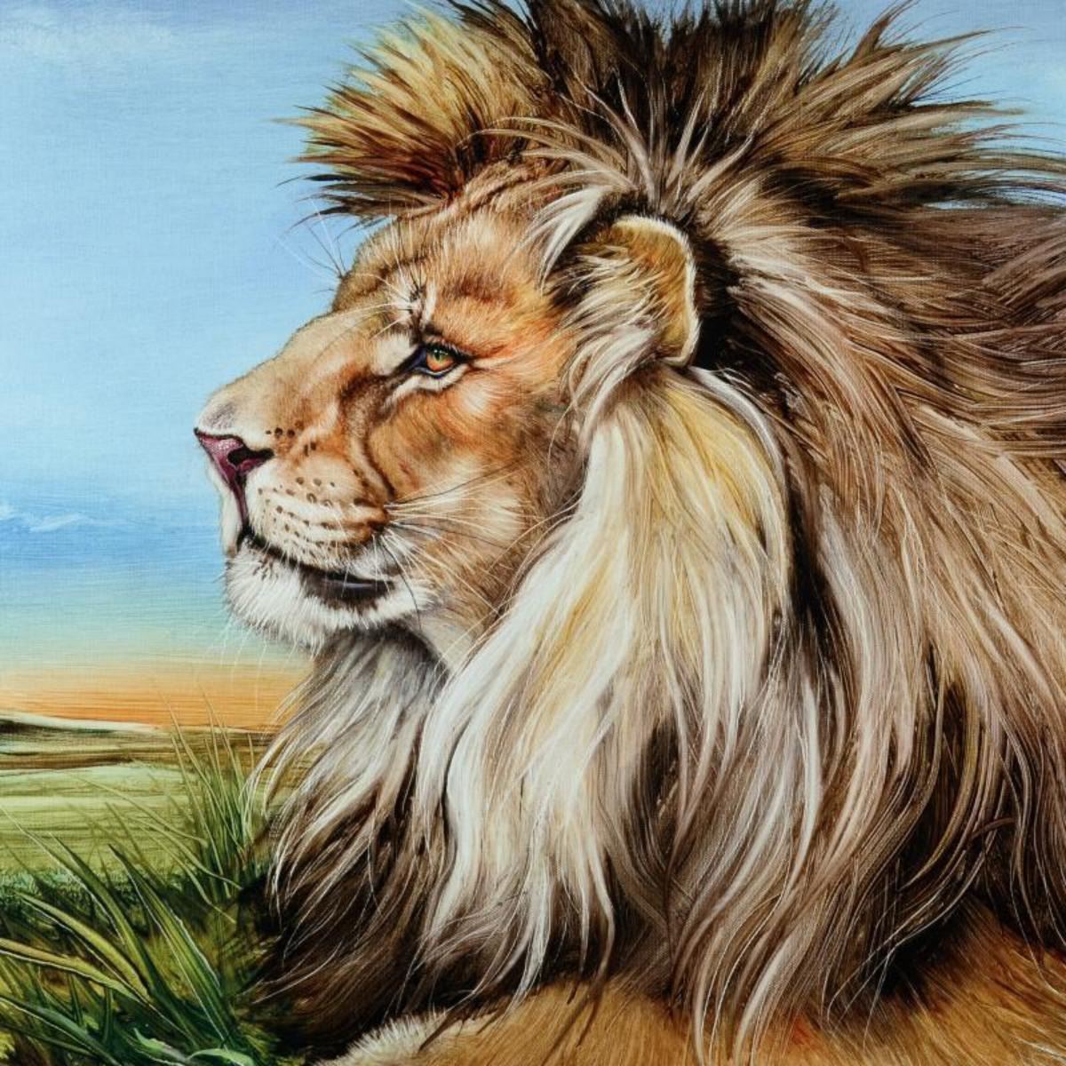 "Guardian Lion" Limited Edition Giclee on Canvas by Martin Katon, Numbered and Hand Signed with COA.