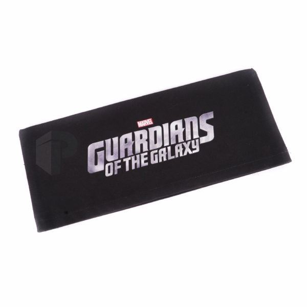Chairback featured in the production of the Marvel film Guardians of the Galaxy. A group of intergalactic criminals must pull together to stop a fanatical warrior with plans to purge the universe. This chair back was used to save the seat of “Quill”, actor Chris Pratt during filming. This piece is made of black canvas and features the films logo on one side and the name “Quill” in white on the other. This piece remains in excellent, production used condition.
