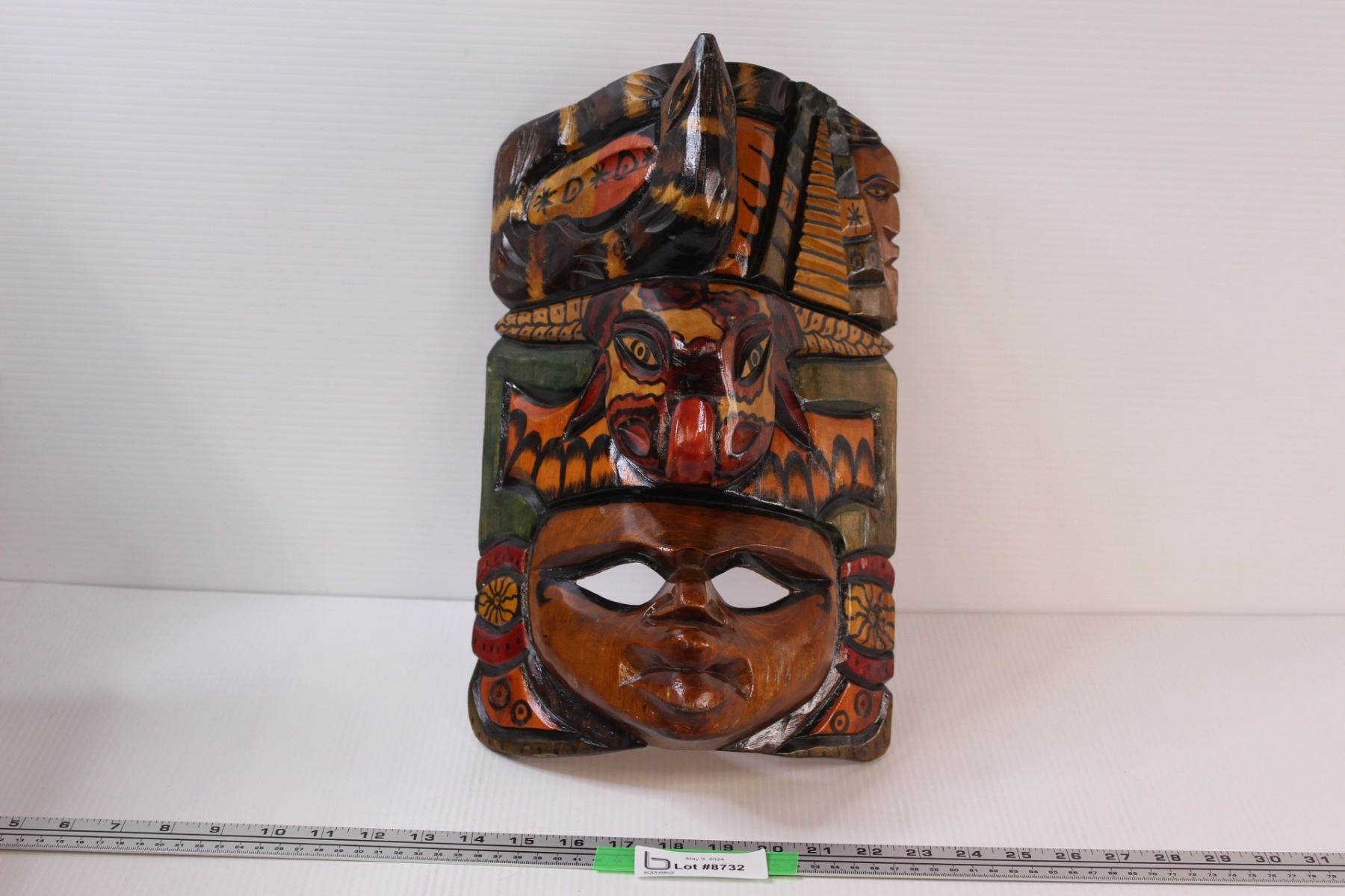 Guatamalan Mayan Carved Painted Mask with Eye Holes