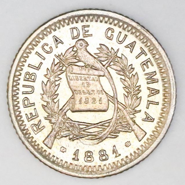 Guatemala, 10 centavos, 1881, NGC AU 55.