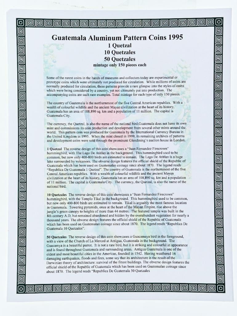 Guatemala Aluminum Pattern Coins 1995 3 -pcs. Set