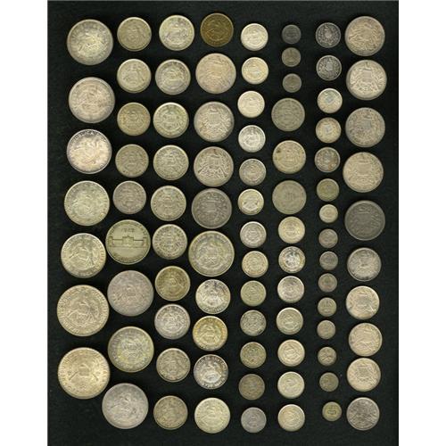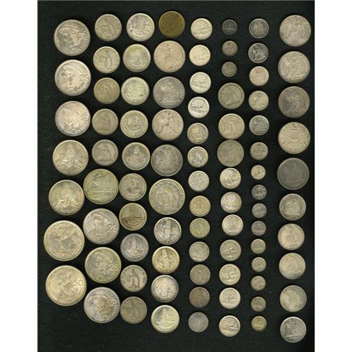 <B>Extensive Collection of Republic Minors, </B></I>eighty-seven different coins, primarily silver and in attractive grades averaging XF. This group would make an excellent starter collection, but many of the individual coins might upgrade even a more advanced collector. 1/4 Reals: 1873 XF, 1875 VF+, 1884 toned UNC, 1879 XF, 1886 VF-XF, 1888 XF, 1889 XF, 1890 XF, 1894H AU, 1895 UNC, 1896 UNC, 1897 XF and 1901 AU; 1/2 Reals: 1894 AU, 1894H UNC, 1895 AU, 1896 AU, 1899 .600 Fine UNC; Reals: 1891 VF, 1894H XF, 1896 XF, 1897 XF and 1900 KM174 choice UNC, scarce; 2 Reals: 1881 toned XF, 1894 AU, 1894H XF, 1895 AU, 1895H XF, 1896 AU, 1897 XF and 1898 AU; Centavo 1934 nice UNC, scarce; 5 Centavos 1925 choice AU, scarce, 1928 VF-XF, 1929 VF, 1932 VF, 1938 nice AU, 1943 XF-AU, 1945 UNC, 1948 AU, 1949 KM255 scarce BU small tree, 1950 gem BU, 1951 BU, 1952 BU, 1955 BU, 1956 BU, 1957 BU, 1958 XF, 1959 XF, 1960 BU, 1961 BU and 1964 BU; 10 Centavos 1925 VG/F, 1928 VF, 1929 XF-AU, 1933 VF-XF, 1938 XF, 1943 XF, 1945 UNC, 1947 AU, 1948 XF, 1949 VF-XF, 1949 KM256.1 choice UNC, scarce, 1950 XF, 1951 XF, 1952 XF, 1953 XF, 1955 XF-AU, 1956 AU, 1957 UNC, 1958 AU, 1960 BU, 1961 BU and 1964 BU; 1/4 Quetzal 1948 toned XF; 25 Centavos: 1881E VF, 1943 VF, 1950 toned AU scarce date, 1954 AU, 1955 AU-UNC, 1956 UNC, 1959/8 choice toned UNC, scarce, 1961 BU, 1963 BU and 1964 BU; and 50 Centavos: 1962 BU and 1963 BU. An unusually appealing collection with very little damage or cleaning. Catalog value is about $475 but many of these high grade minors are underrated in the SCWC. <B>Sold as is, no return lot.</B></I><BR><BR><b>Shipping:</b> Coins & Currency (<a target="_blank" href="http://www.heritageauctions.com/common/shipping.php">view shipping information</a>)