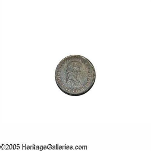 <B>Ferdinand VII 1/2 Real 1811-M, </B></I>KM65, MS65 NGC, beautiful toning, rare date although not indicated as such in the SCWC.