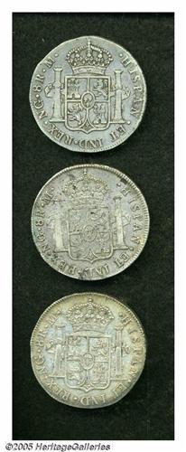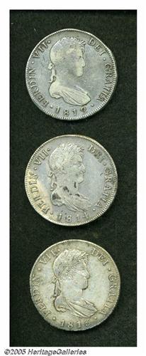 <B>Ferdinand VII 8 Reales - Trio, </B></I>KM69, 1812-M, AVF, 1813-M, toned VF+ with some underlying luster and a bold strike, and 1814-M, F-VF with some carbon spots and light scratches. <B>Sold as is, no return lot.</B></I>