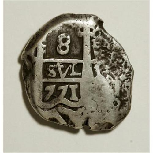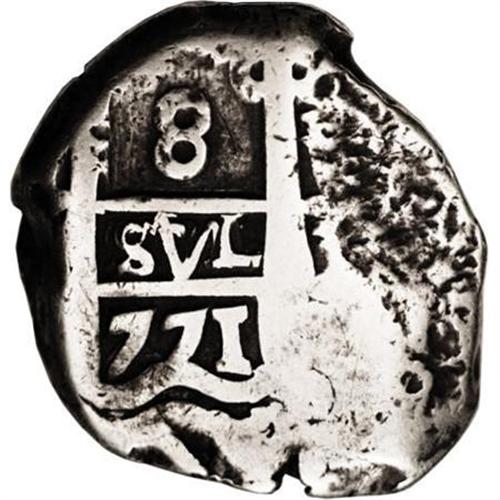 <B>Republic Sun & Mountains Counterstamp (1839),</B></I> KM100, Type II countermark on Bolivia-Potosi cob 8 Reales 1771, bold date. The host cob is crude VF. The counterstamp is applied on the reverse.<BR><BR><b>Shipping:</b> Coins & Currency (<a target="_blank" href="http://www.heritageauctions.com/common/shipping.php">view shipping information</a>)
