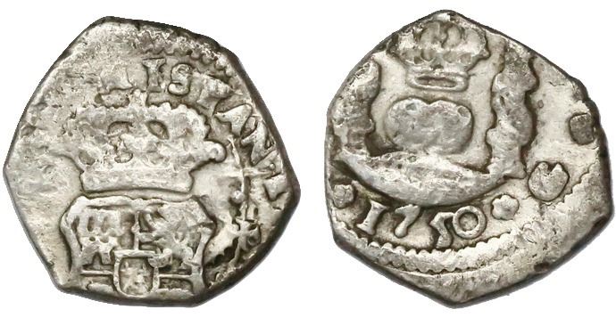 Guatemala, cob 1/2 real, 1750(J), ex-Richard Stuart. S-G1a; CT-619; KM-8. 1.52 grams. Choice and high grade (XF+ with unmarked fields and traces of luster), with 100% full date and mintmark, die-crack on denomination, scarce as unholed. Pedigreed to the Richard Stuart collection.