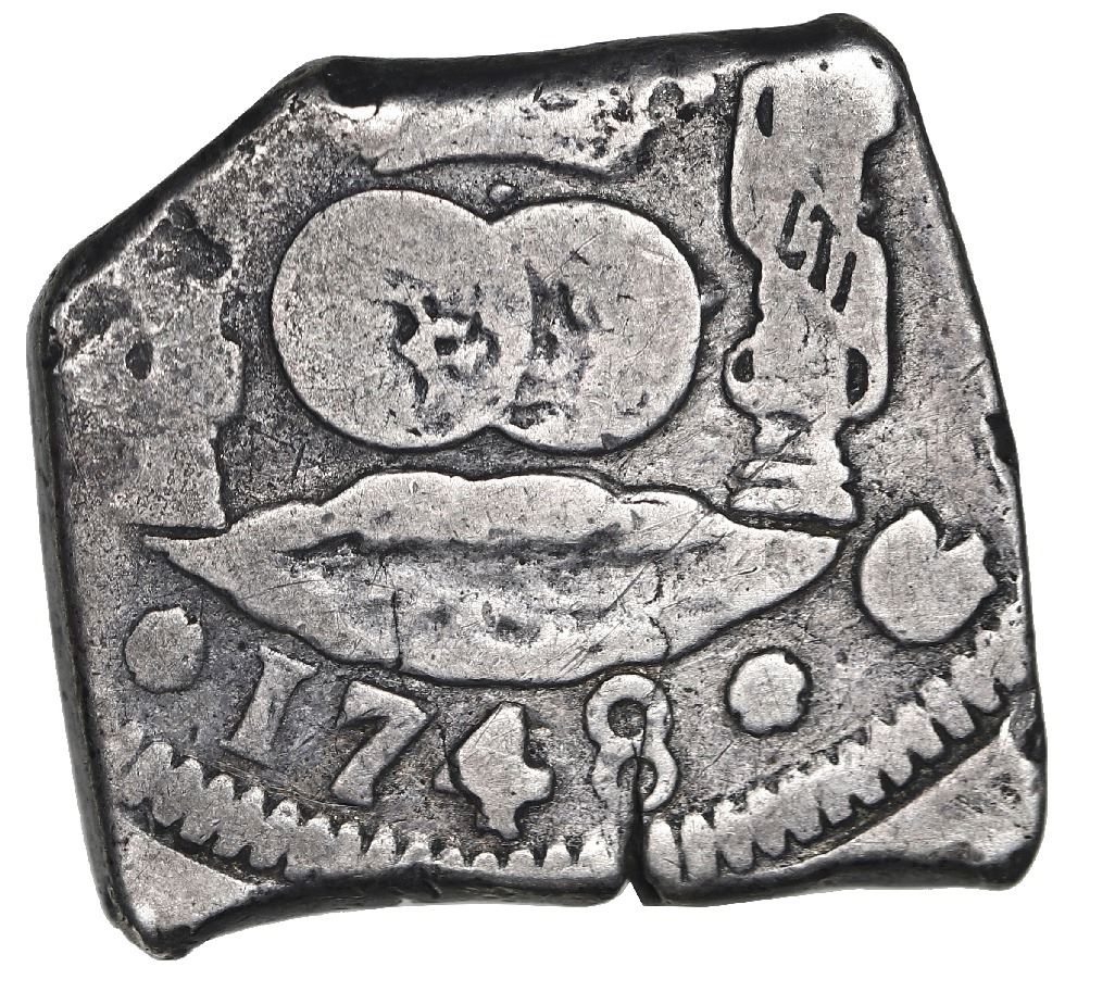 Guatemala, cob 4 reales, 1748J, Pellicer I Bru Plate Coin. S-G1a; Cal-346; KM-11; JP-4R16. 13.19 grams. Choice VF on a squarish flan with 100% full date and mintmark and assayer, nice central details, attractively toned, with small edge-split (rare thus), scarce date, desirable pedigree. Pedigreed to the Antigua collection and Plate Coin #1475 on page 309 of Pellicer I Bru's Medio Duro (1971), also pedigreed to the Cayon auction of March 2014 (lot 441).