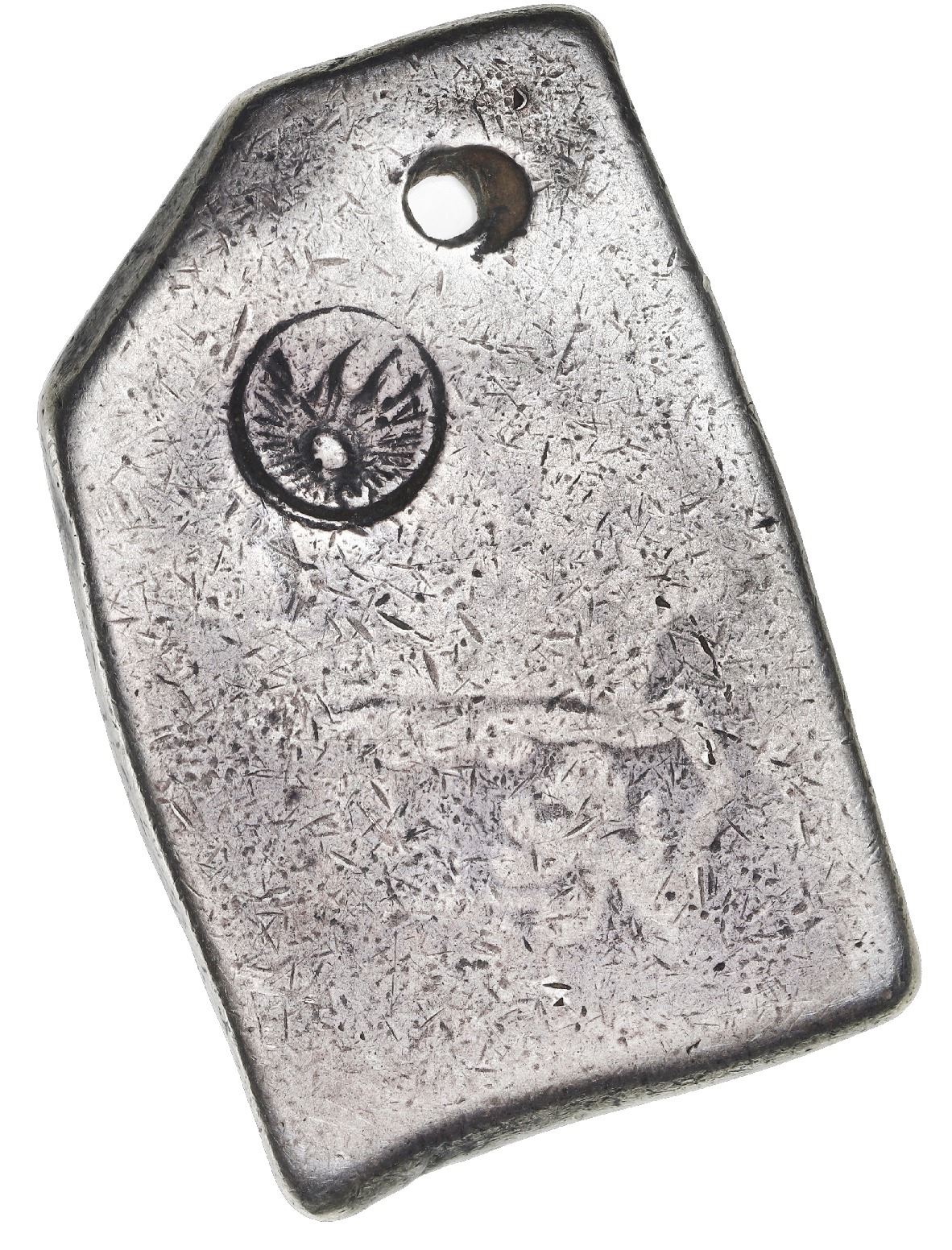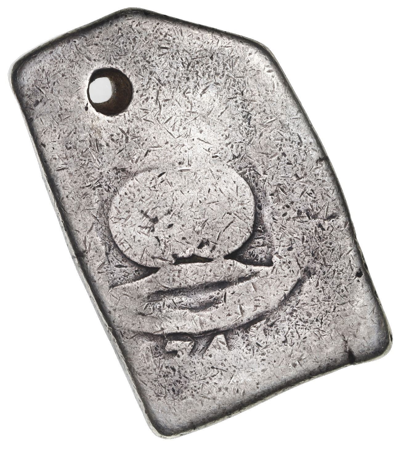 Guatemala, cob 8 reales, 1745(J), very rare, with sun-over-mountains countermark (Type II, 1839) on shield side. S-G1; Cal-1252; KM-6; JP-8R13. 25.79 grams. Rectangular flan with hole near one corner next to a very prominent VF countermark, clear upper half of the rare date (probably fewer than ten known), rather worn overall (Good) but with contrasting toning. Pedigreed to the Antigua collection.