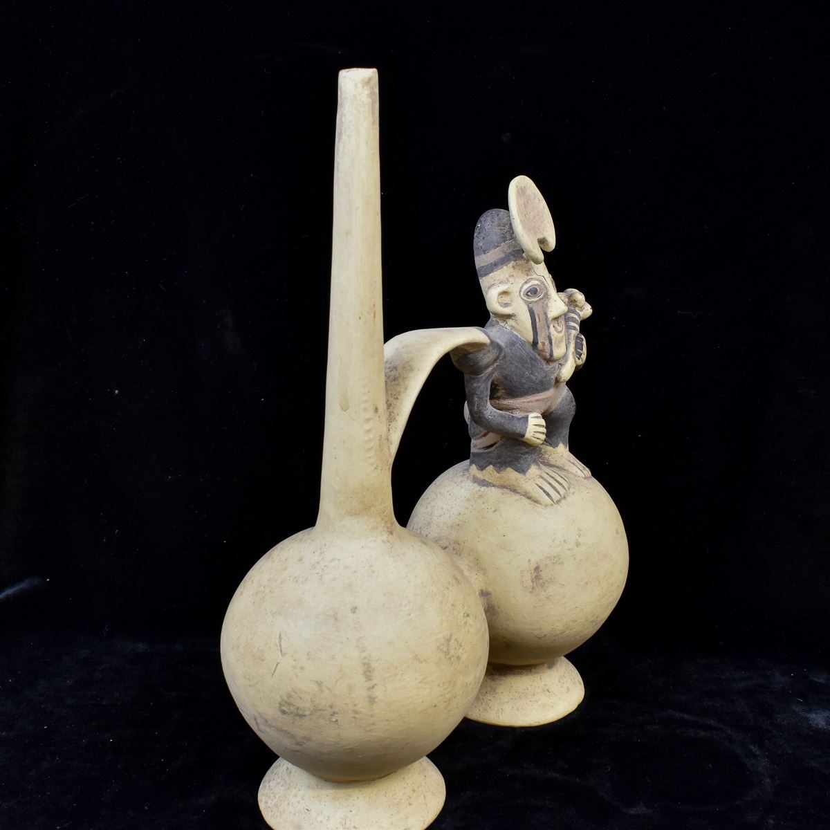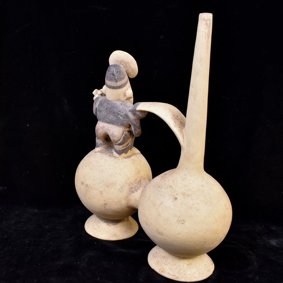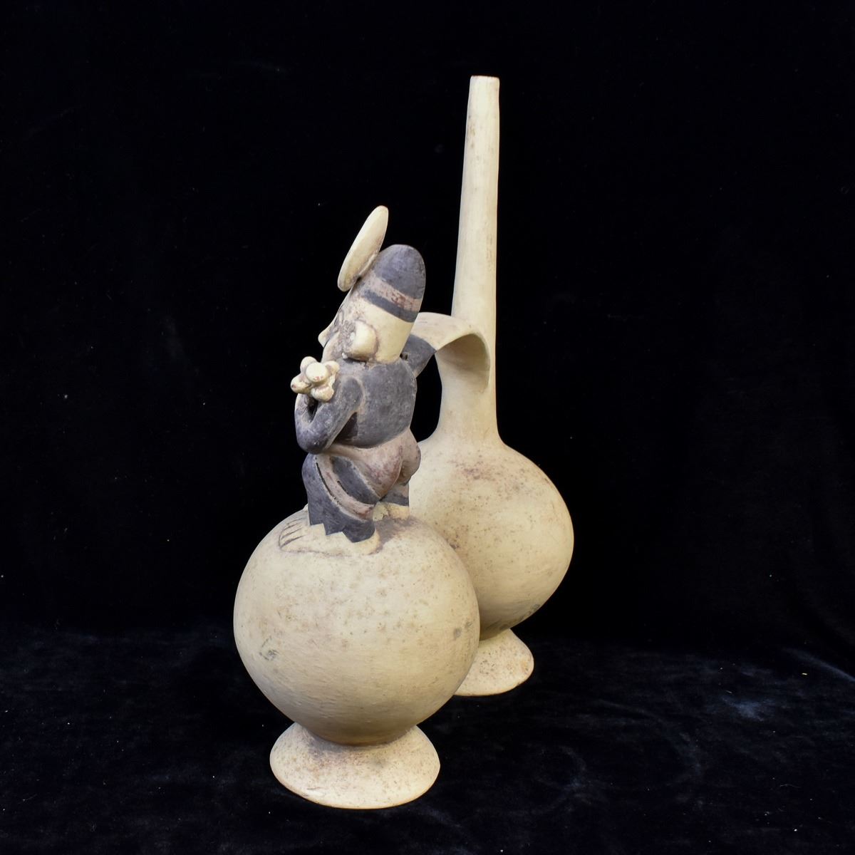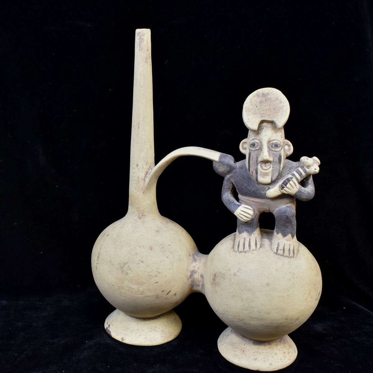 Guatemalan Human Form Stirrup Pottery Replica, measures 8.5''W x 12''H x 4''Deep, stamped on the bottom