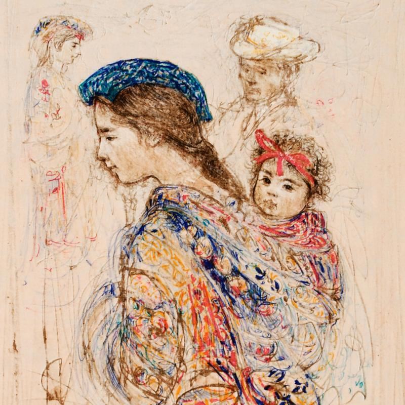 "Guatemalan Mother and Baby" is a limited edition lithograph on rice paper, numbered and hand signed by Edna Hibel (1917-2014). Includes Certificate of Authenticity! Measures approx. 12" x 16" (with border), 8" x 10.5" (image).
