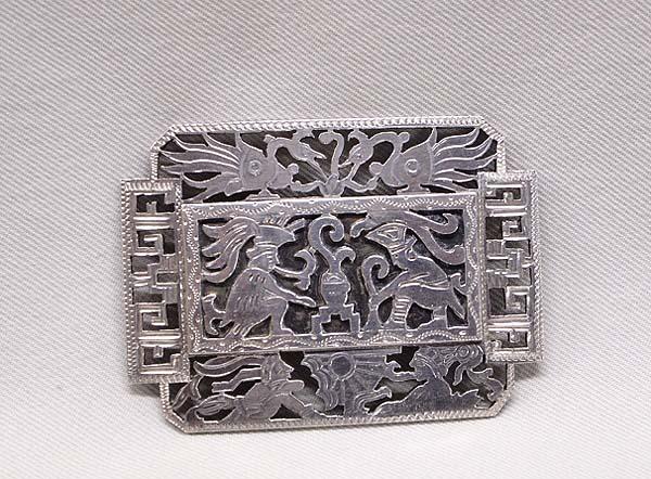 Guatemalan Sterling Silver Pin, Mayan Gods & Birds