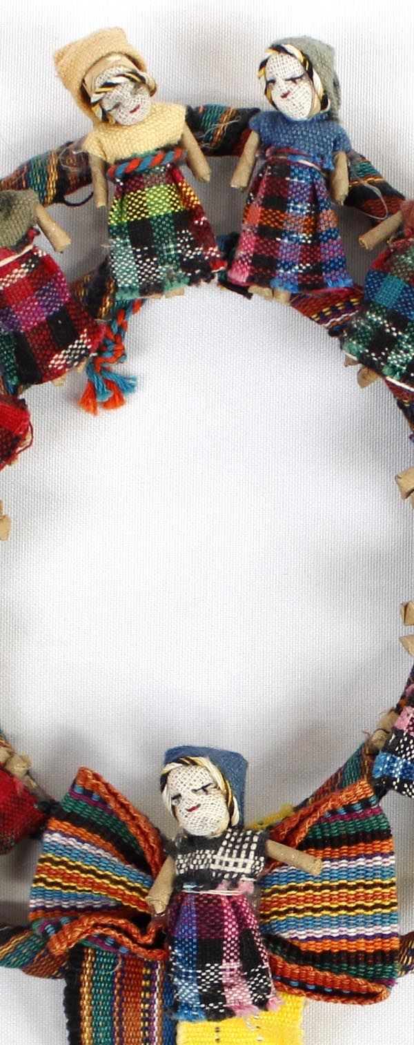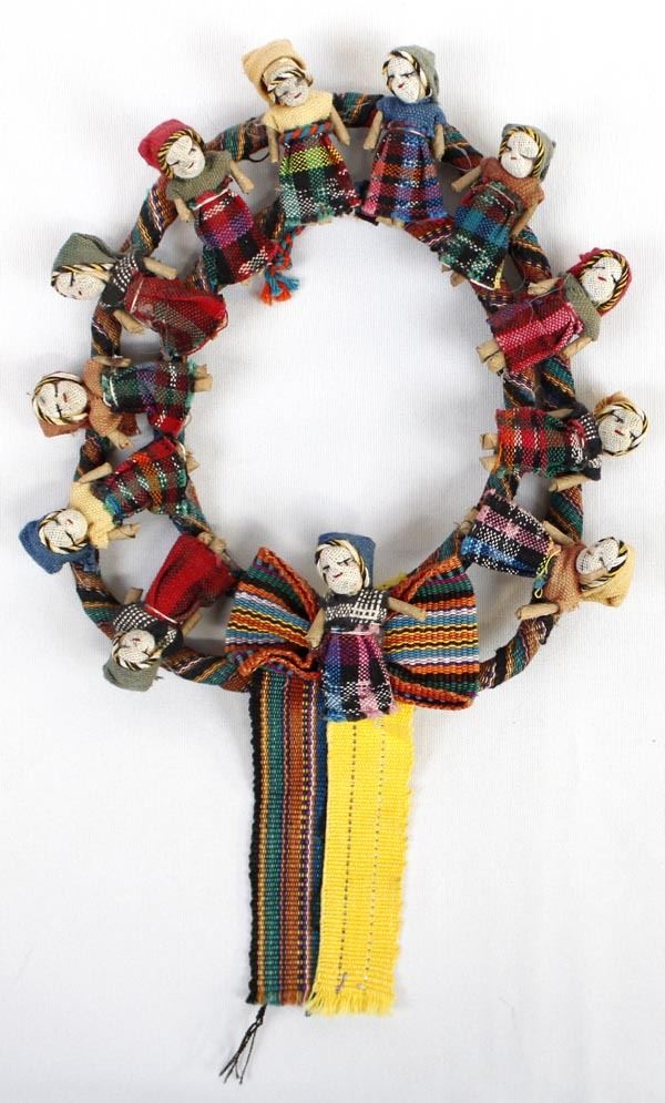 Guatemalan Worry Doll Wreath, measures 8.5"D