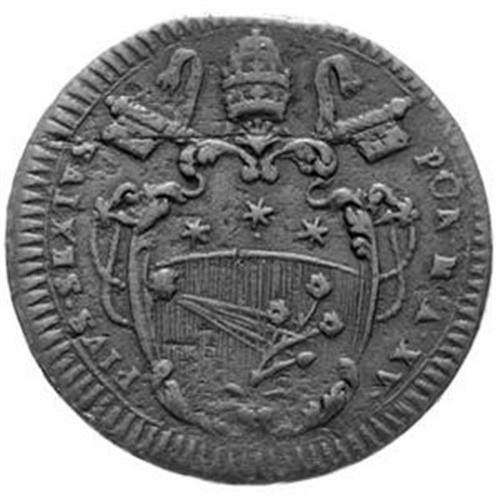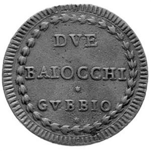 Gubbio. Pio VI (1775-1799). 2 baiocchi A. XV. M. 355. R. AE. Graffio al D/. Bel BB.