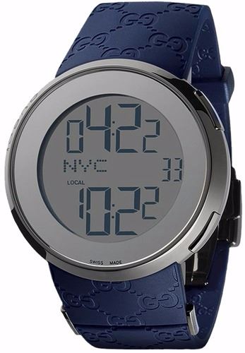 Model: YA114208 - CASE = [Material:Gunmental PVD Steel], [Case Diameter:44], [Case Back:Solid], [Water Resistant:30 Meters/100 Feet], [Crystal:Scratch Resistant Sapphire],; DIAL = [Color:Silver Digital],; MOVEMENT = [Type:Battery Powered Quartz],; BAND = [Clasp:Deployment Buckle], [Type:Blue Rubber],  (Usually ships in 4 to 8 weeks.)