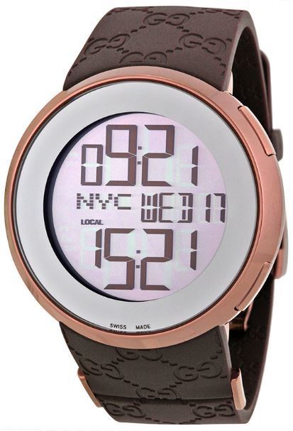 Model: YA114209 - CASE = [Material:Brown PVD Stainless Steel], [Case Diameter:44], [Bezel:Fixed], [Water Resistant:30 Meters - 100 Feet], [Crystal:Scratch Resistant Sapphire], DIAL = [Color:Silver Digital], MOVEMENT = [Type:Quartz], BAND = [Clasp:Deployment], [Type:Brown Rubber],  (In Stock - Ready to ship.)