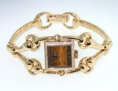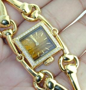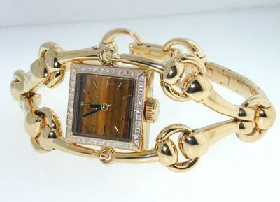 Gucci 18K Yellow Gold Diamonds Watch with Certificate.Watch's Weight : 96.2 grams.Total weight of diamond: 0.44 cts, G color, VVS clarity.The length of watch: 5.5".Swiss made