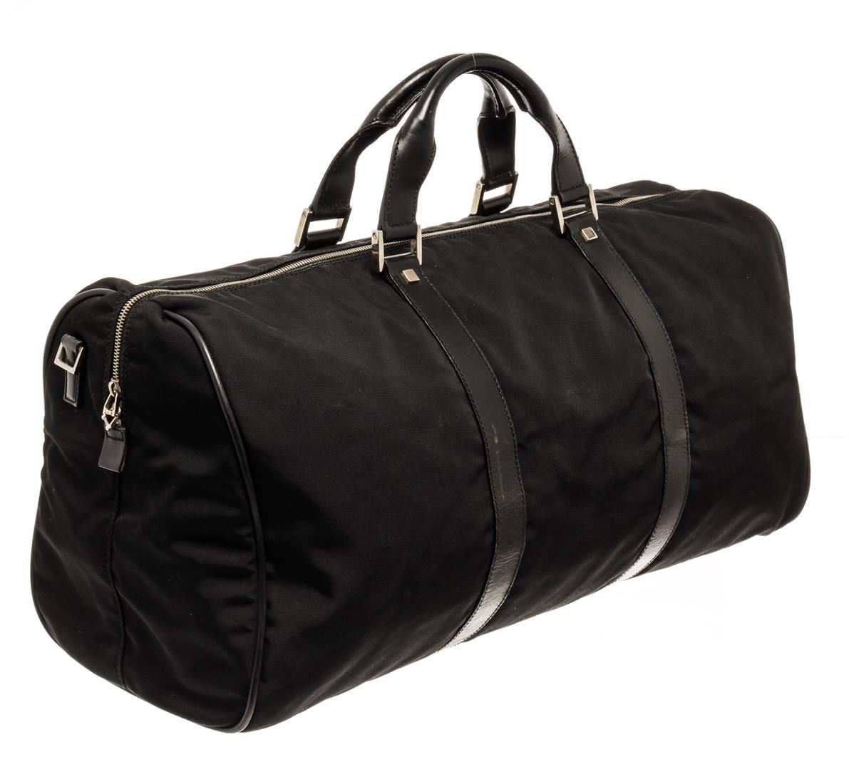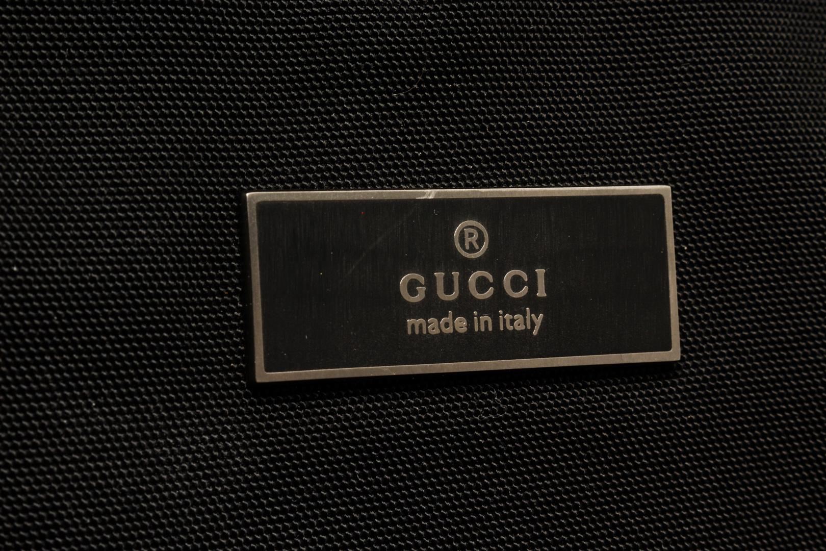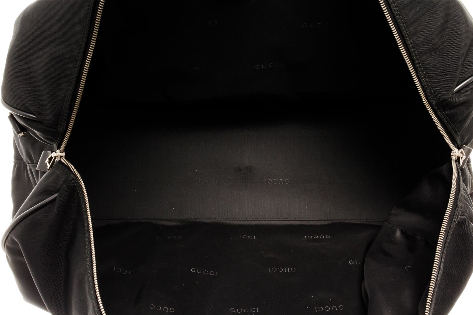 One Gucci Black Boston Bag. Item is sold AS-IS. All available information is listed in the description and shown in the photo. Gucci black Boston bag with top handles, silver-toned hardware, one zip interior pocket, and black fabric lining.