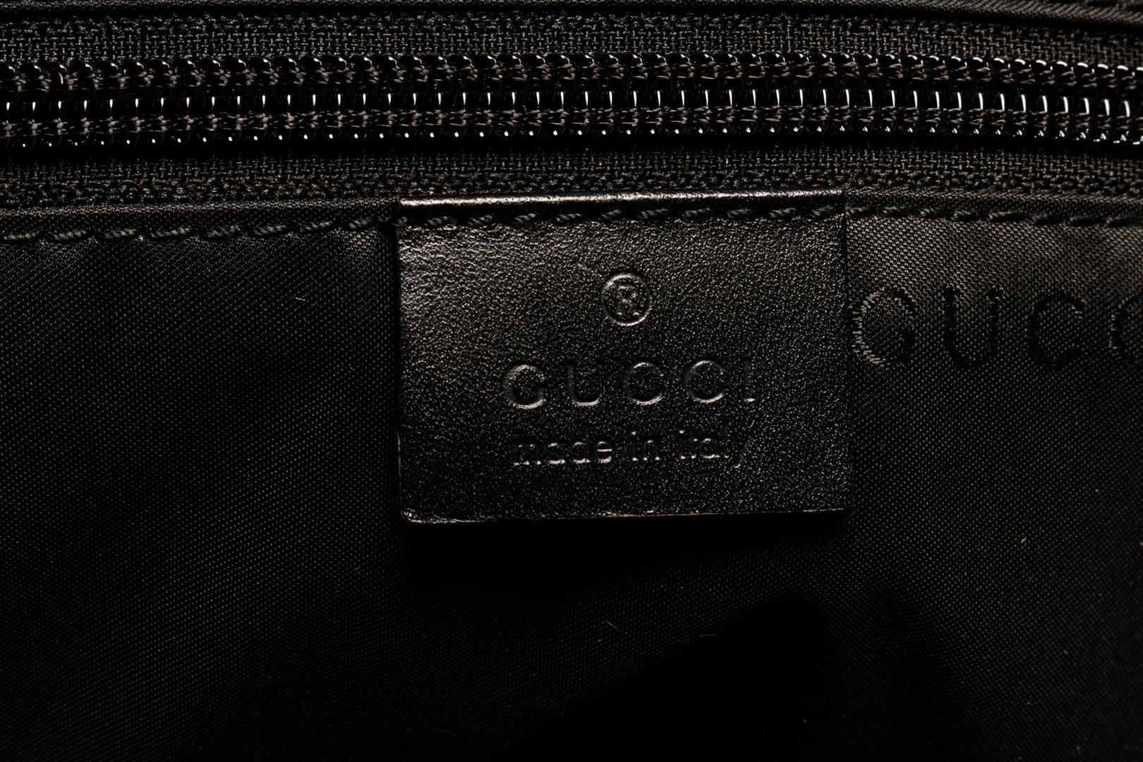 One Gucci Black Boston Bag. Item is sold AS-IS. All available information is listed in the description and shown in the photo. Gucci black Boston bag with top handles, silver-toned hardware, one zip interior pocket, and black fabric lining.