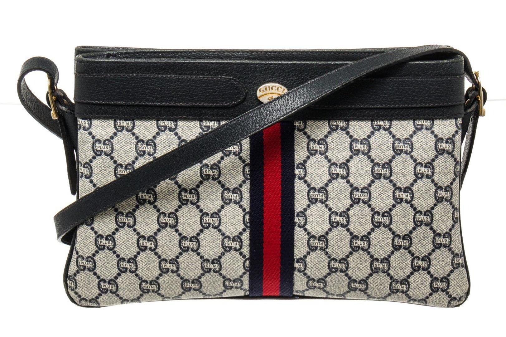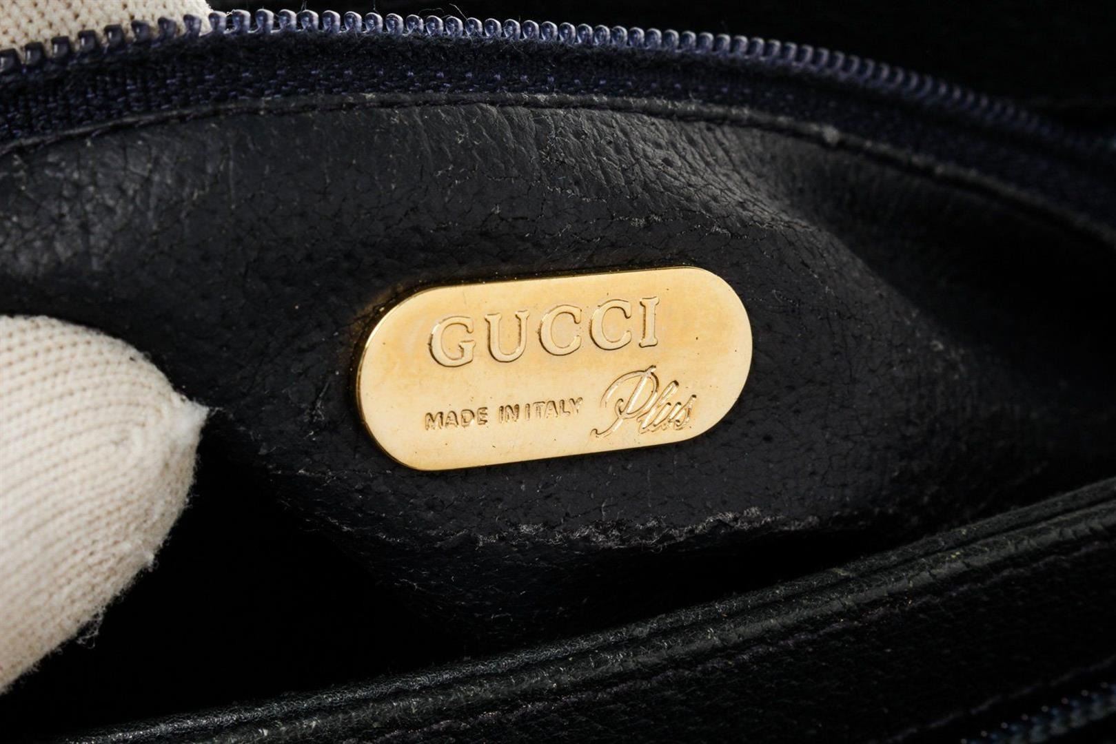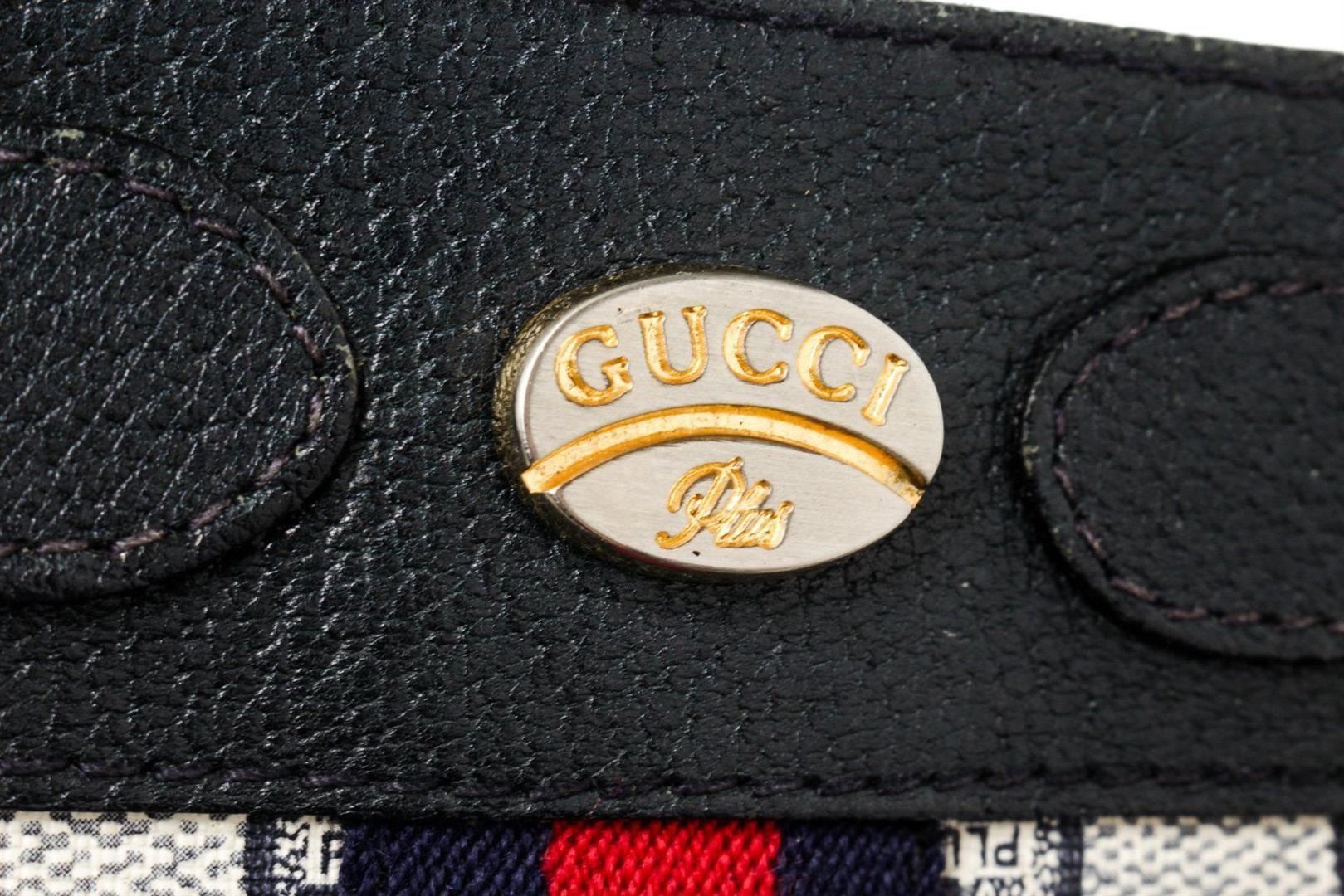 Gucci Black Canvas Two Way Shoulder Bag with canvas, silver tone hardware, leather lining, zip closure.