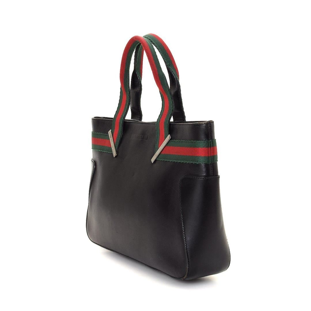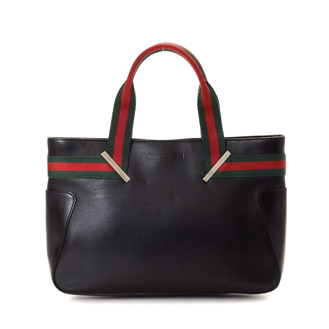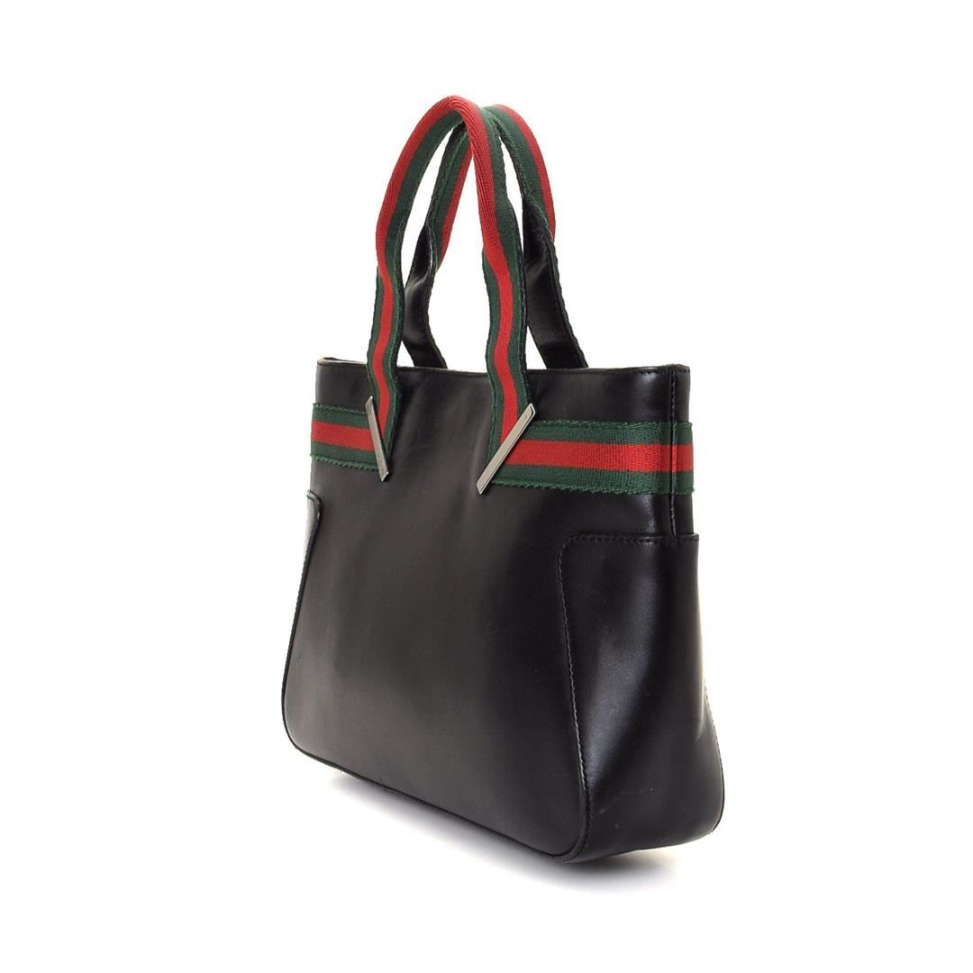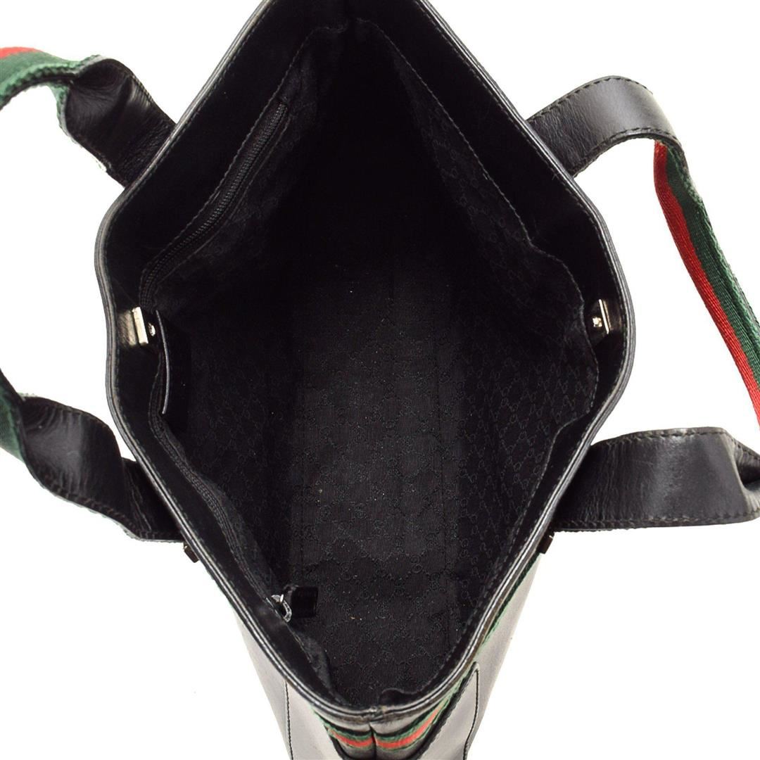 Gucci Black Canvas Web Shoulder Bag with gold-tone hardware, dual flat top handle, tonal leather trim, canvas lining, pockets at interior; one with snap closure. Condition: Pre-Owned Good overall, please see photographs for detail.