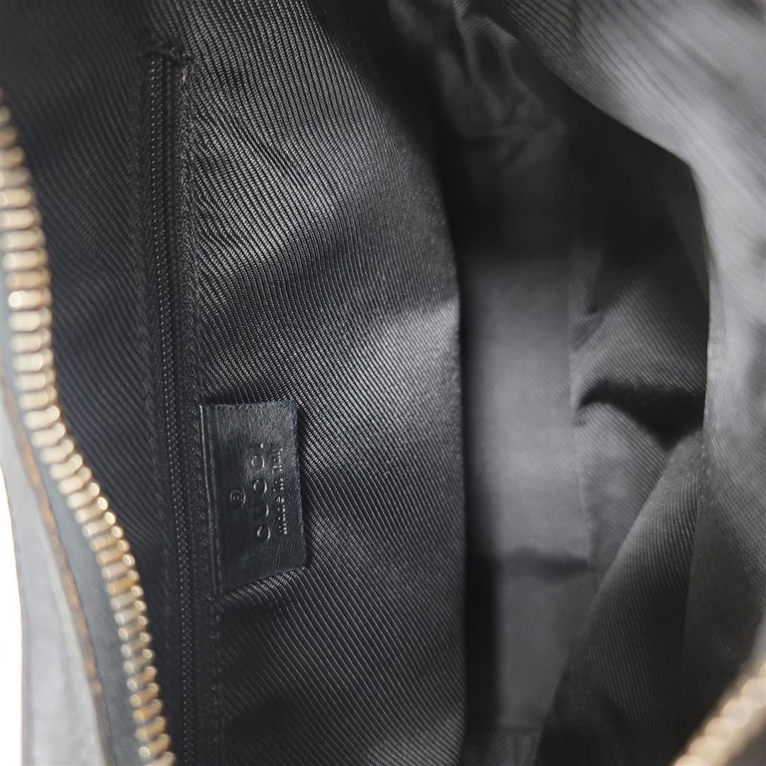 Gucci Black Leather Shoulder Bag with material leather gold-tone hardware, interior slip pockets, leather lining, shoulder strap and zipper closure.