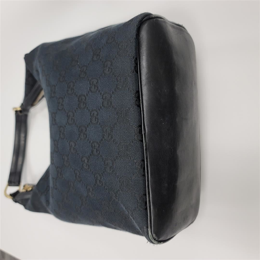 Gucci Black Leather Shoulder Bag with material leather gold-tone hardware, interior slip pockets, leather lining, shoulder strap and zipper closure.