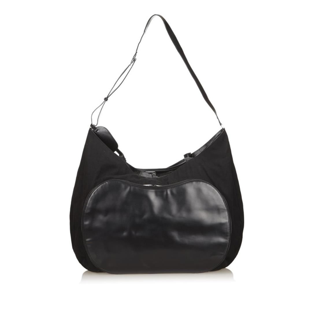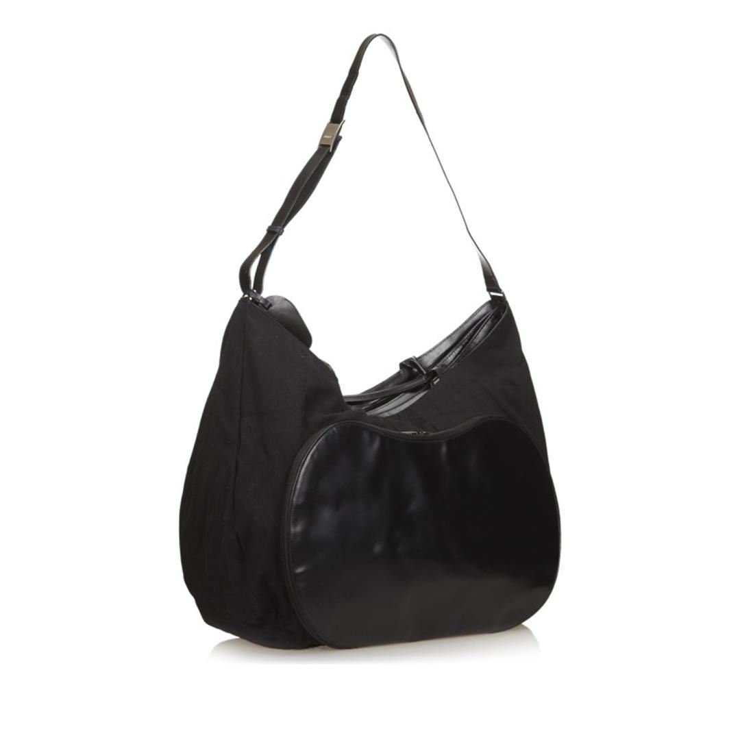 This shoulder bag features a PVC body, flat straps, an adjustable shoulder strap, an exterior zip pocket, a top zip closure, an interior compartment, and an interior zip pocket.