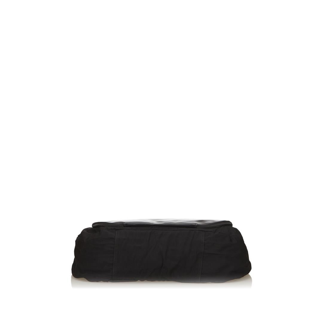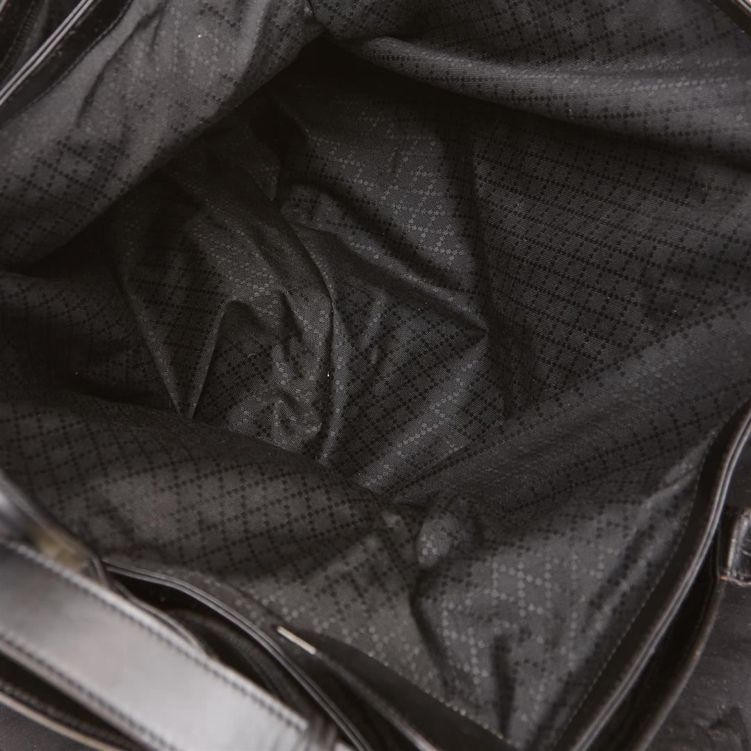 Fabric and vinyl large travel bag with flat straps, and an adjustable shoulder strap, an exterior zip pocket, a top zip closure, an interior compartment, and an interior zip pocket.