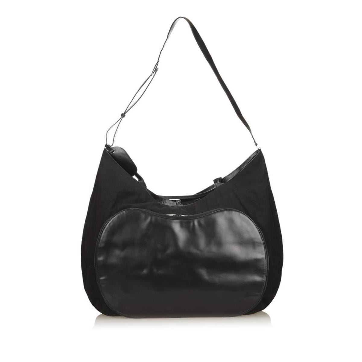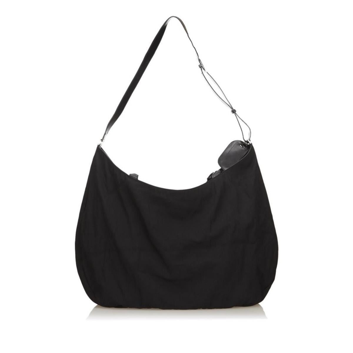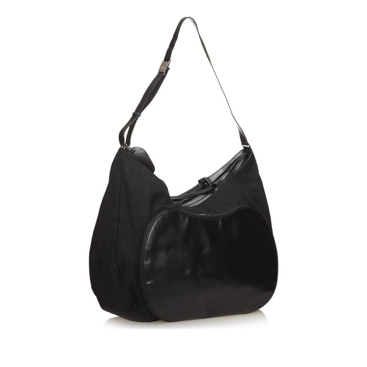 Fabric and vinyl large travel bag with flat straps, and an adjustable shoulder strap, an exterior zip pocket, a top zip closure, an interior compartment, and an interior zip pocket.